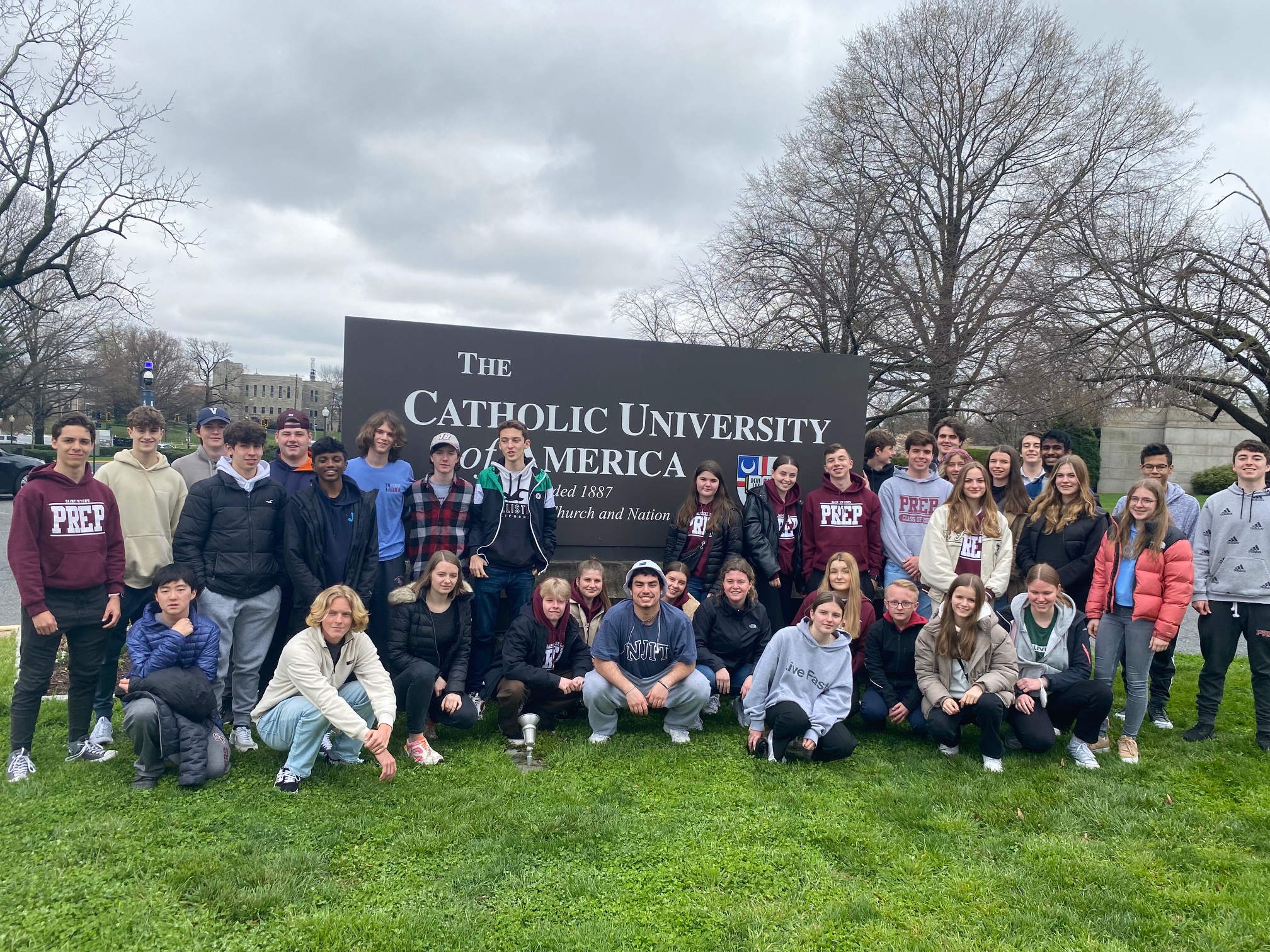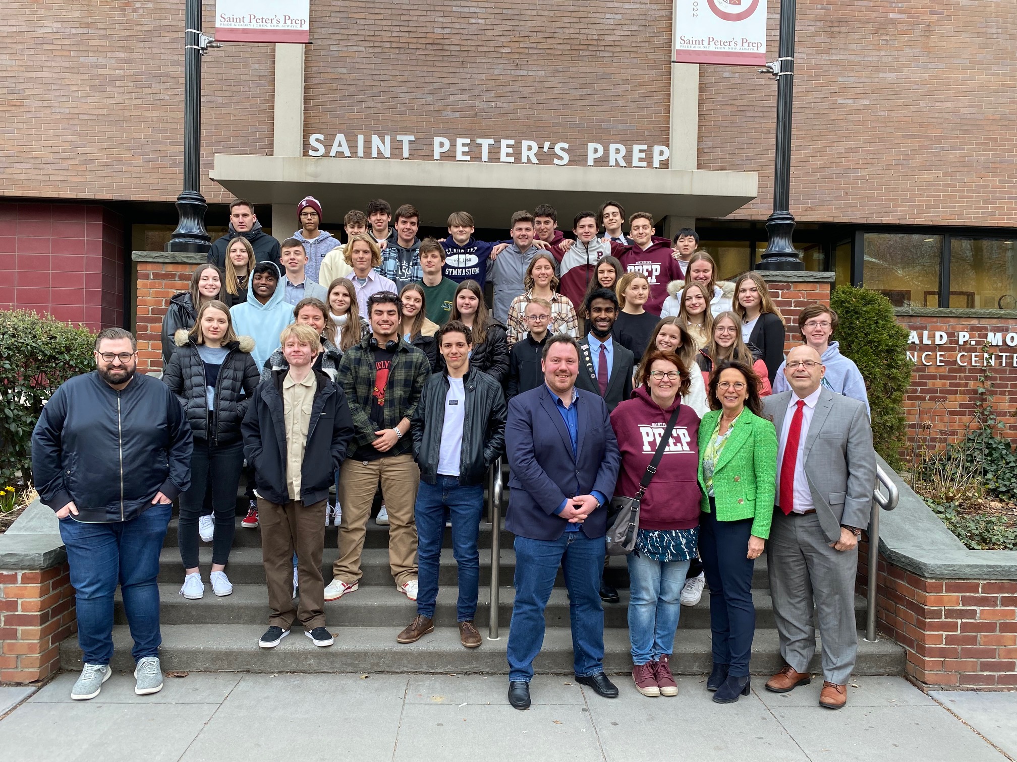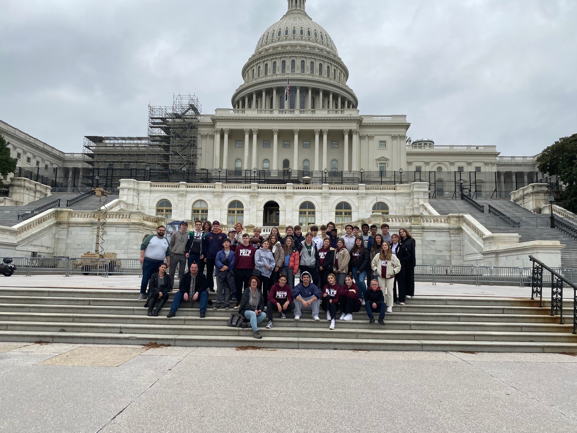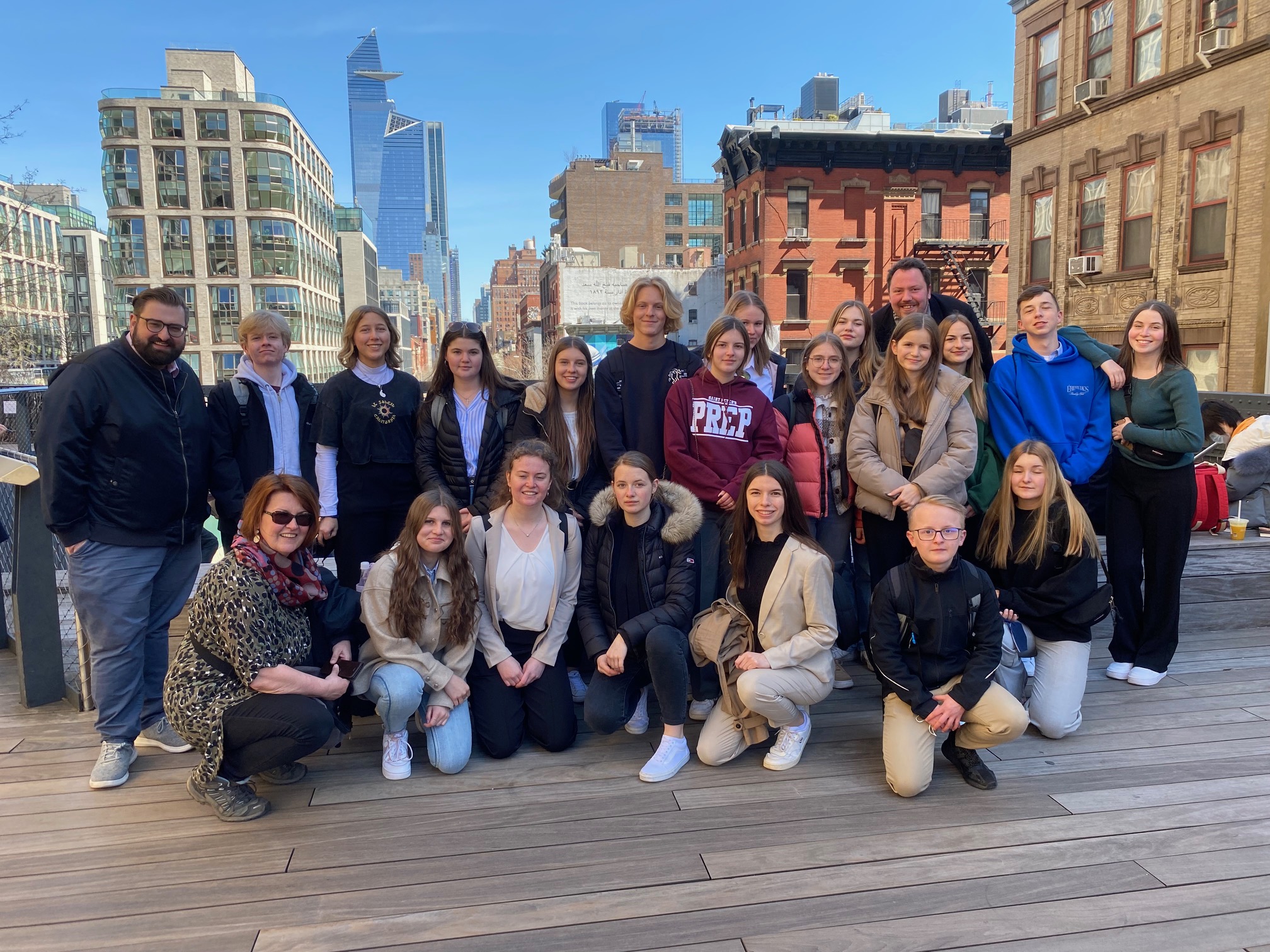 Früh am Freitagmorgen ging es für 19 Teilnehmer der Jahrgangstufe EF und Q1 in Richtung Frankfurt. Von dort aus flogen wir 8 Stunden nach New York. In New York gelandet wurden wir bereits von einigen Austauschschülern begrüßt und zum Schulgebäude begleitet, wo das erste Kennenlernen mit den Gastfamilien stattfand. Alle waren sehr aufgeregt und haben sich auf das erste gemeinsame Wochenende gefreut. Sonntags ging es für uns zum ersten richtigen Ausflug mit der Gruppe: mit der Fähre nach Ellis Island und zur Freiheitsstatue. Montag war unser erster Schultag an der Saint Peters Prep. Alle schick gemacht im Dresscode verlief unser erster Schultag ereignisreich und wir lernten die anderen Schüler kennen. Nach dem ersten erfolgreichen Schultag ging es mit der U-Bahn direkt nach New York zum World Trade Center und zur Wall Street. Außerdem haben wir das 9/11 Memorial gesehen und konnten die Stadt von oben betrachten. Am nächsten Tag ging es nach der Schule wieder in die Stadt zum Times Square und zum Broadway Musical Wicked. Die nächsten zwei Tage verbrachten wir in Washington, wo wir unter anderem das Weiße Haus, das Lincoln Memorial, Martin Luther King Memorial und das Kapitol gesehen haben. Nachdem wir zusammen mit der Gruppe essen waren, konnten wir zurück auf unser Hotelzimmer, wo wir uns für den nächsten Tag ausgeruht haben. Den zweiten Tag hatten wir zur freien Verfügung und bekamen die Chance uns die vielen Museen anzusehen. Herr Veniero zeigte uns sein altes College, The Catholic University of America, in Washington. An den freien Tagen haben sich viele untereinander getroffen, um zu bowlen, eine Fahrradtour zu machen, in der Mall zu shoppen, in einen Freizeitpark zu gehen oder sich New York bei schönem Wetter genauer anzusehen. In der nächsten Woche besuchten wir die High Line, von der aus wir die kulturelle Vielfalt Amerikas auf dem Chelsea Market wiedergefunden haben. Zum Abschluss des Austauschs fand ein Dinner mit den Gastfamilien und Lehrern in der Cafeteria der Schule statt. Schon an diesem Abend haben wir gemerkt, wie sehr uns die neuen Freunde fehlen werden und welche schönen Erinnerungen wir gesammelt haben.