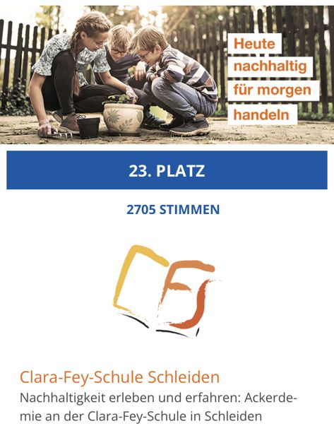 Wir möchten uns ganz herzlich für Eure und Ihre Unterstützung beim Wettbewerb für nachhaltige Projekte an Schulen der Spardabank bedanken. Wir haben den 23. Platz erreicht und damit 2000€ für unseren Gemüseacker gewonnen!