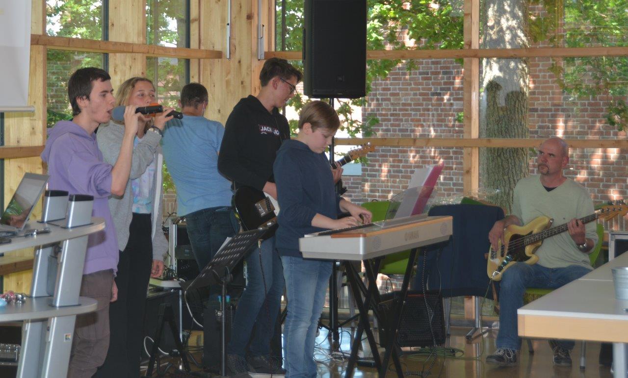 Die „Bandclinic“ unter der Leitung des Musiklehrers Ralph Pompe sorgte für einen schwungvollen musikalischen Empfang, bevor es für die 90 neuen SchülerInnen zum spannendsten Teil des Begrüßungstag kam – der Einteilung der Klassen sowie der Bekanntgabe der Klassenleitungen. Die Klasse 5a übernimmt Fabian Salentin, die 5b wird von Laura Hassert geleitet und die Klasselehrerin der 5c ist Eva-Maria Berners.