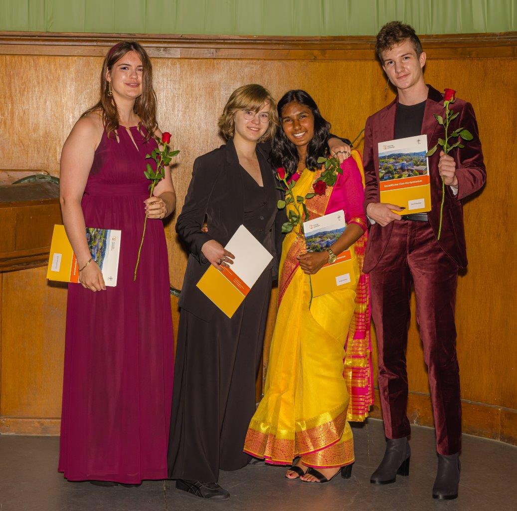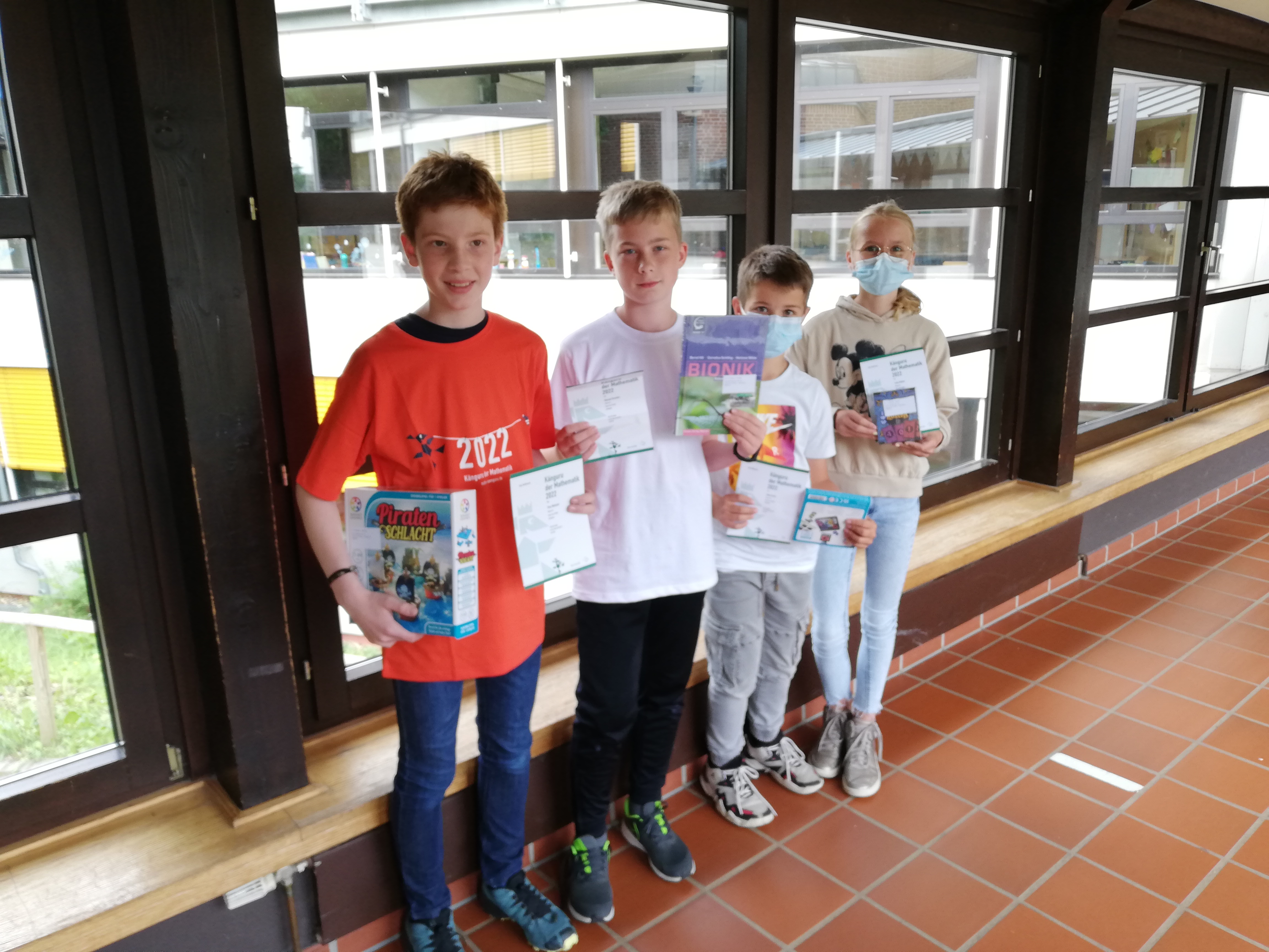 Die Ergebnisse können sich sehen lassen: Lena Gehlen (6b) errang einen 3. Preis, Manuel Brandes (6c) und Mika Esser (5b) gewannen beide einen zweiten Preis. Schulbester mit 107,5 Punkten wurde Finn Niehßen (6c), der auch mit einem 2. Preis prämiert wurde und dazu auch noch den größten Kängurusprung (die meisten Aufgaben in Folge richtig bearbeitet) der CFS schaffte. Über die tollen Preise freuten sich die vier und können damit auch mächtig stolz auf sich sein.