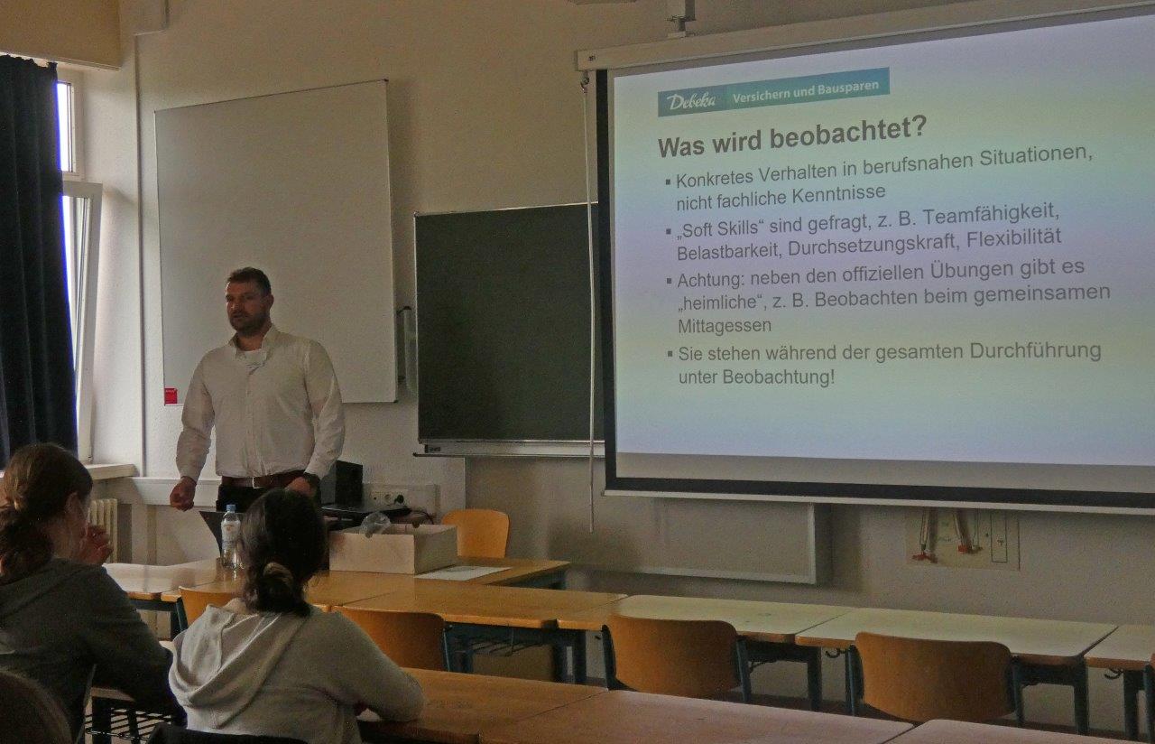 Gruppendiskussionen wie z.B. die Planung einer Studienfahrt ermöglichten einen Einblick in die Methode des Assessment Center. Ausführliche Rückmeldungen seitens der Expertinnen und Experten sowie das Ausfüllen eines originalen Eignungstests mit anschließender Auswertung trugen zu einem sehr gelungenen und lohnenswerten berufsvorbereitenden Vormittag bei.