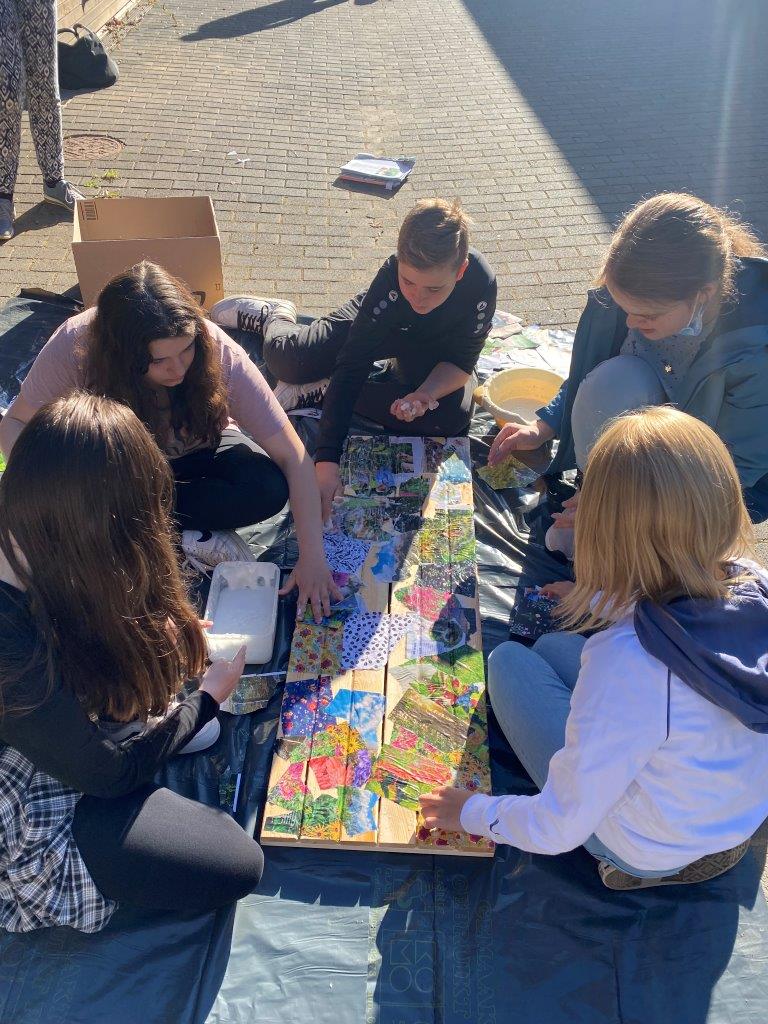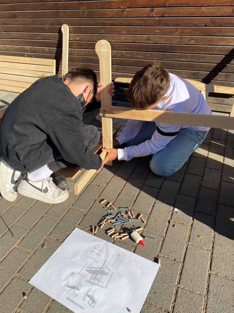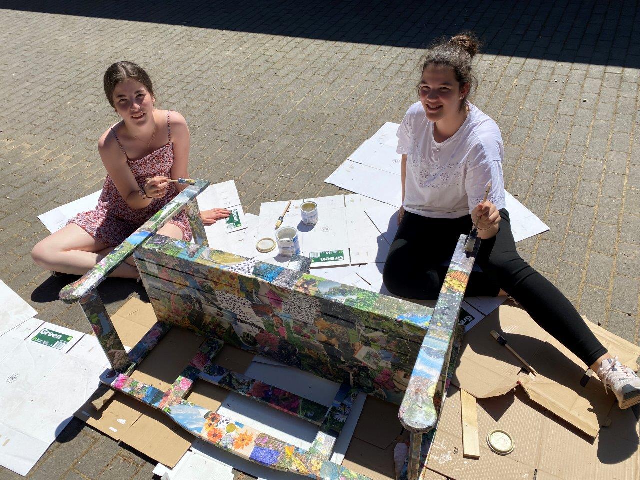 Die WP Kunst-Kurse der CFR der Klassen 7ef und 8ef ließen ihrer Kreativität freien Lauf und gestalteten im Kunstunterricht eine Gartenbank der besonderen Art für die „Ackerdemie“ unserer Clara-Fey-Schule. Nachdem die technikaffinen Jungs des WP-Kurses die Bank fachmännisch zusammengebaut hatten, gestalteten die übrigen SchülerInnen des Kurses diese mit Motiven aus der Natur und des Gartens und versiegelten sie mit Klarlack.