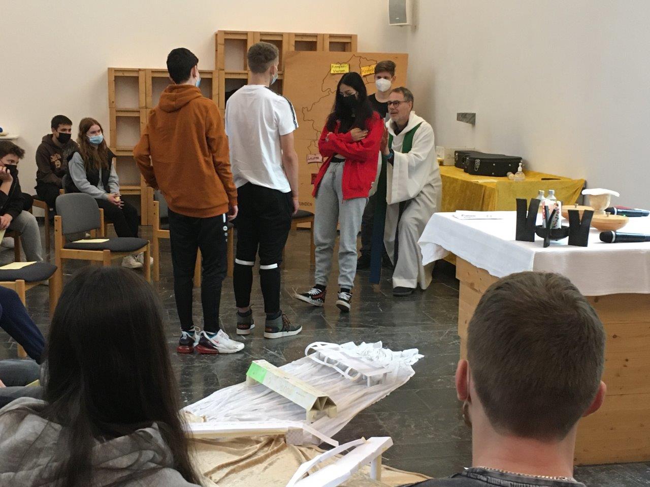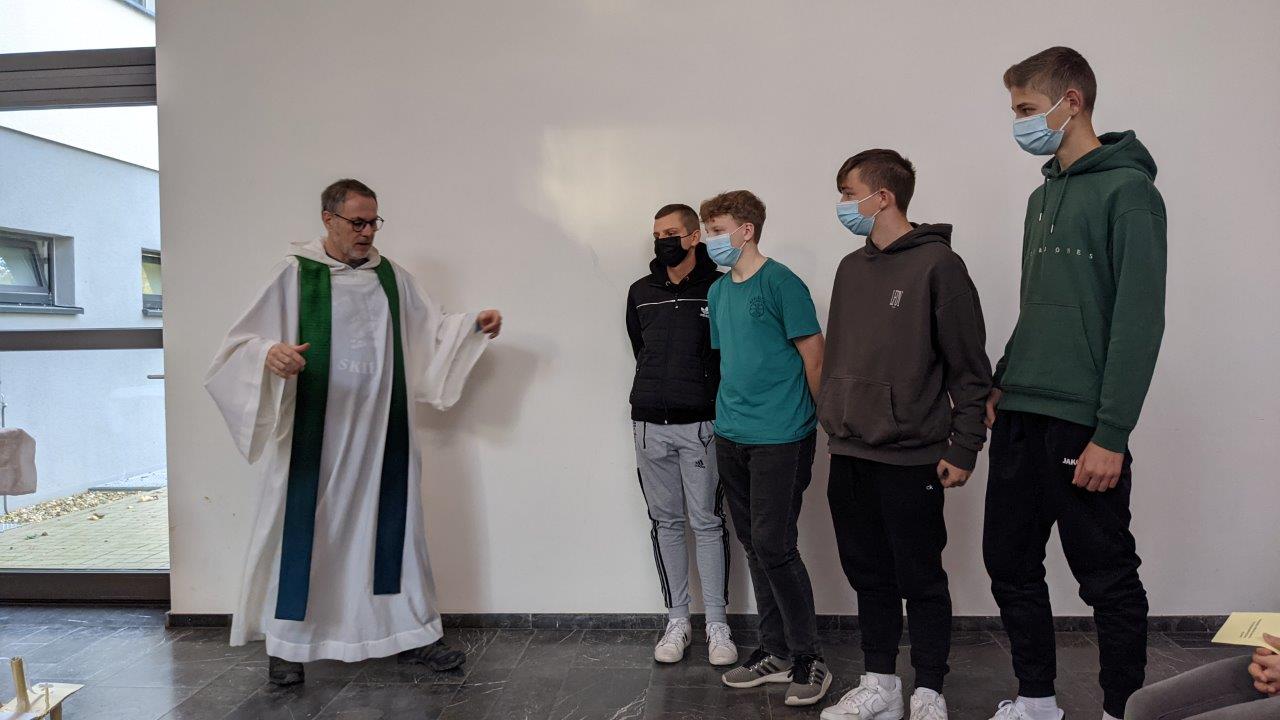 Nach dem gemeinsamen „Vater unser“ dankte Weihbischof Borsch der Klasse 5f für ihre Vorbereitungen und beendete die Feier mit einem Segensgebet.