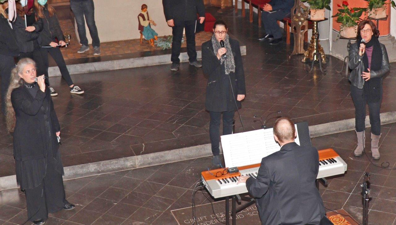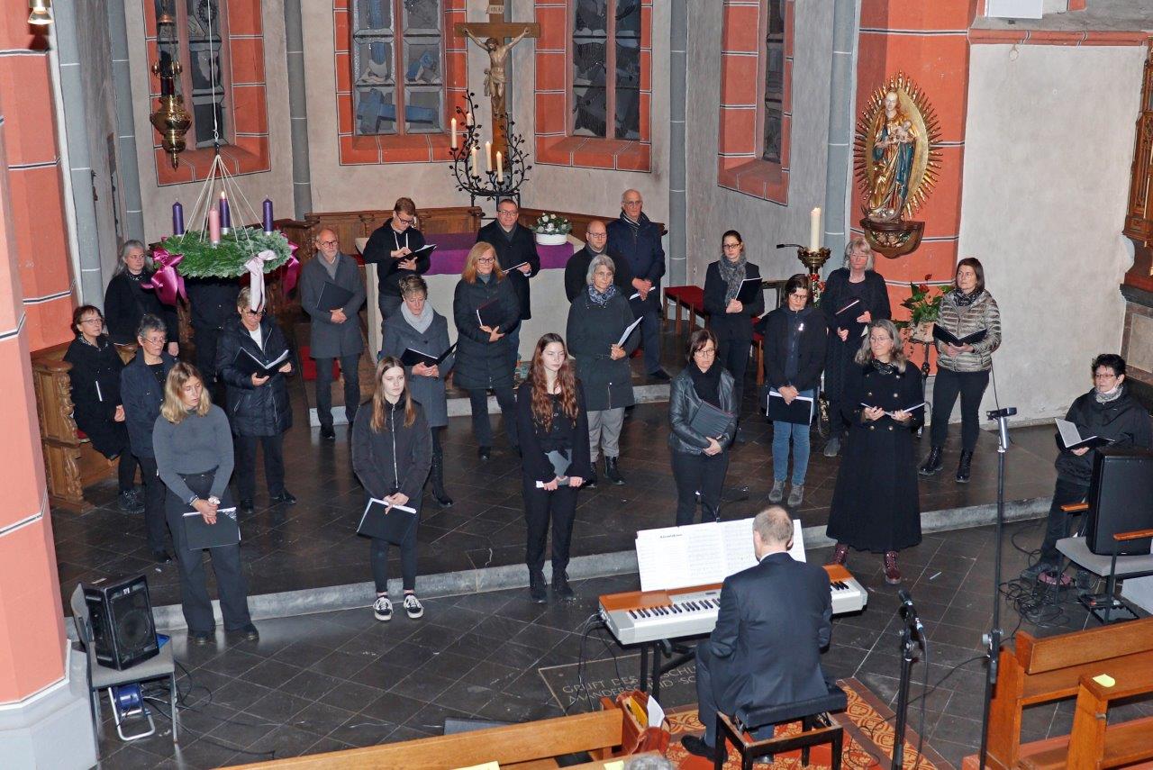 Die Antwort lautet: Es war ein großartiger Erfolg ohne Nebenwirkungen, dafür aber mit begeisterten Kommentaren vieler BesucherInnen. Der Chor zeigte eine breite Ausdruckspalette verschiedenster Stücke wie z.B. „Wunder geschehn“ von Nena oder Spirituals wie „To my father’s house“ und konnte auch in der kleineren Besetzung den Kirchenraum klanglich beeindruckend füllen. Zum ersten Mal arbeiteten wir mit Herrn Warler zusammen, der die König-Orgel perfekt beherrscht und nach einigen Chorstücken wie z.B. „Moon River“ von Henry Mancini nahtlos mit genialen Improvisationen anknüpfte, indem er zuvor verwendete musikalische Elemente spontan in sein Spiel einfließen ließ. Astrid Sistig sprang mit dem Vortrag adventlicher Texte für den erkrankten Pfarrer Cuck ein und sorgte damit für vorweihnachtliche Besinnlichkeit. Die Gesangs-Solistinnen Jutta Jansen, Heike Kupp und Caroline Shvelidze erhielten für ihre gefühlvolle Interpretation des Songs „The Rose“ von Amanda McBroom den ersten wohlverdienten Szenenapplaus. Am Ende des Konzerts lud Frau Schütt-Gerhards das Publikum zum gemeinsamen Singen mit dem Chor ein, der sich dazu ganz vorschriftsmäßig die Masken anzog und folglich zum ersten Mal in seiner Laufbahn „mit Dämpfer“ singen durfte.