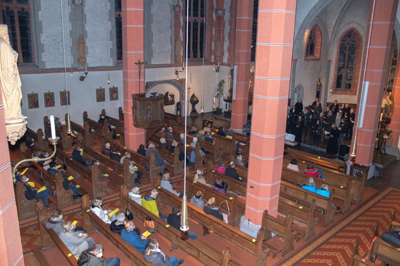 Bange Fragen stellten sich vor unserem diesjährigen Adventskonzert in der Schlosskirche Schleiden: Wird es überhaupt stattfinden können? Kommen zu viele oder zu wenige BesucherInnen? Können wir nach fast zwei Jahren Corona und mit stark reduzierter Zahl von SängerInnen überhaupt noch gut genug singen?
