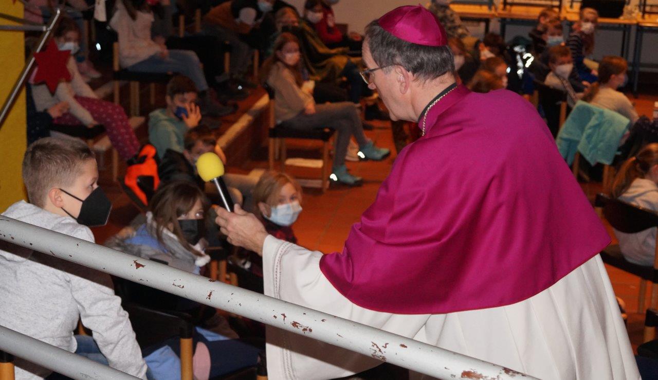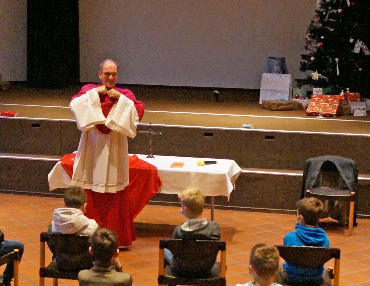 Am 13. Dezember feierte Weihbischof Karl Borsch gemeinsam mit den Klassen der Jahrgangsstufe 5 eine Andacht zum Namenstag der Hl. Lucia, der Lichtträgerin.