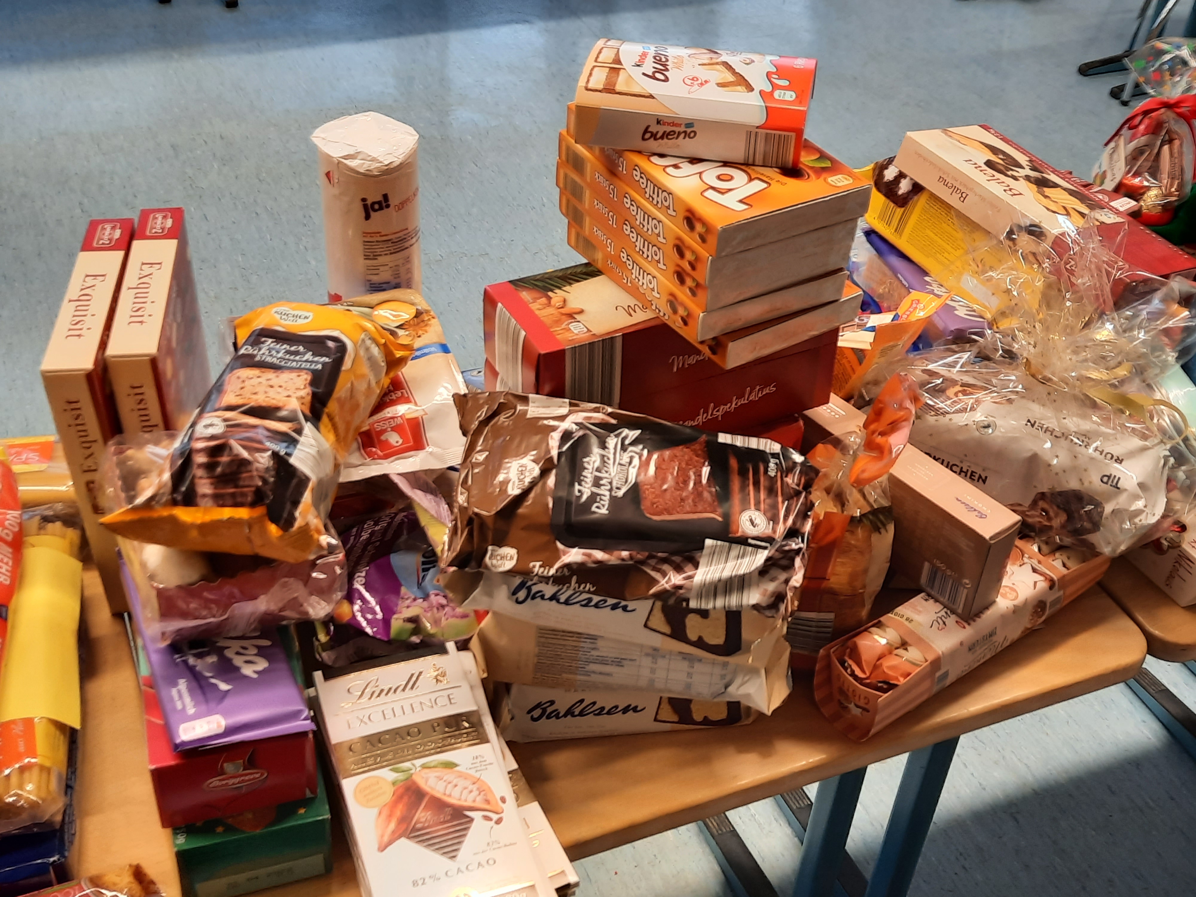 Schlussendlich konnten wir fast 40 randvoll gepackte Weihnachtskisten an Frau Keutgen von der Caritas übergeben, die diese in der nächsten Woche an bedürftige Personen und Familien aus der direkten Umgebung verteilen wird.