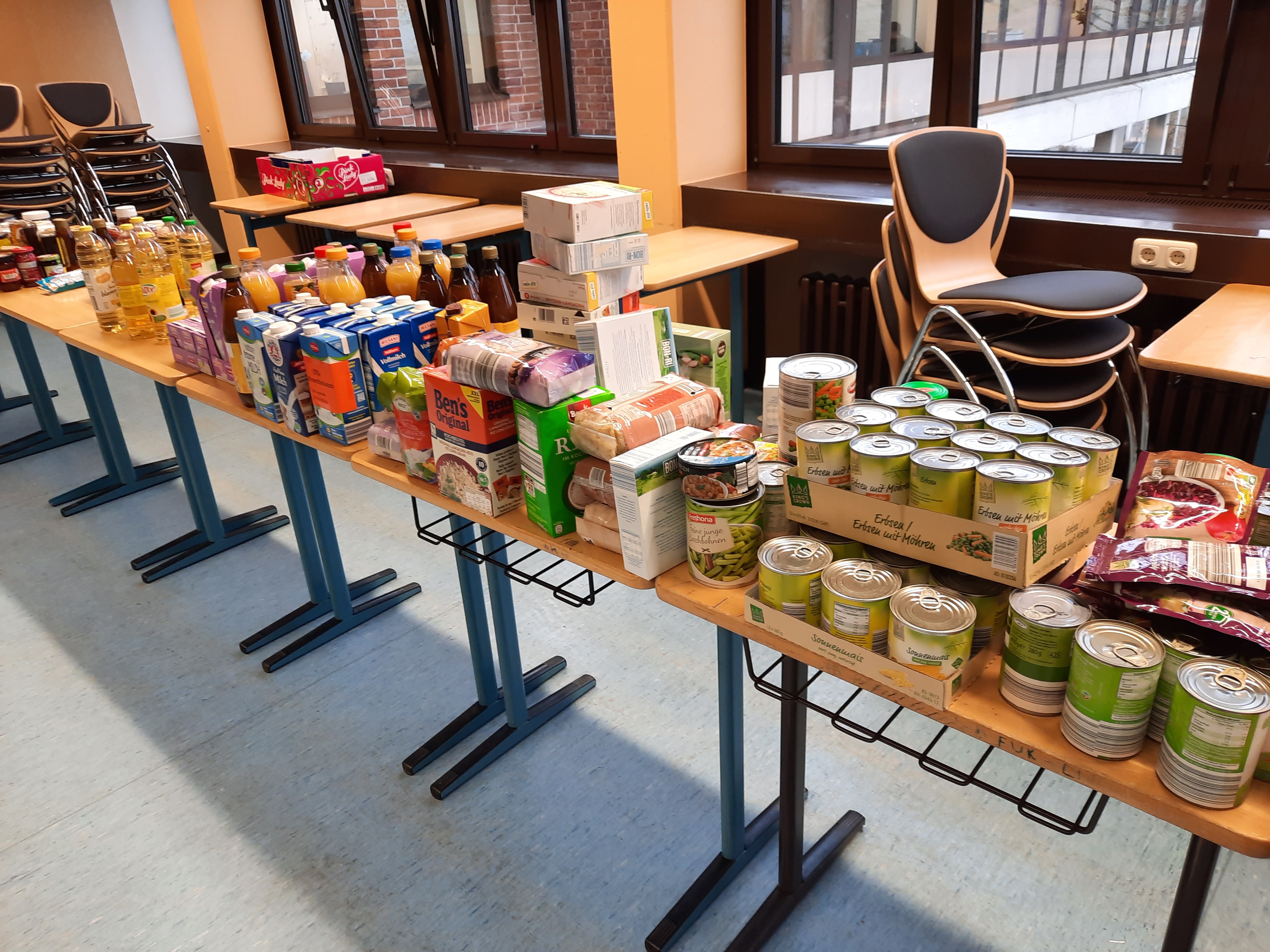 Auch in diesem Jahr haben sich wieder viele SchülerInnen, LehrerInnen und andere MitarbeiterInnen unserer Schulgemeinschaft an unserer Aktion beteiligt und in den ersten beiden Dezemberwochen ein oder mehrere haltbare Lebensmittel gespendet. Teilweise wurde sogar so viel gespendet, sodass wir mehrmals täglich die Spendenbox ausleeren mussten.