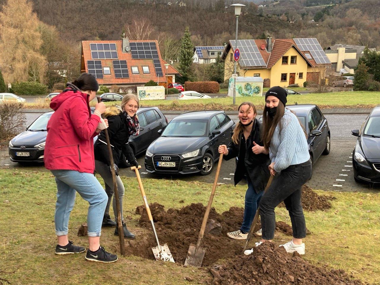 Dabei ist die Idee zur gemeinsamen Pflanzung alter Apfel- und Birnbaum-Sorten entstanden, die wir dann am 15. Dezember gemeinsam mit Ulrich Meisen und allen SchülerInnen der Q1 realisierten.