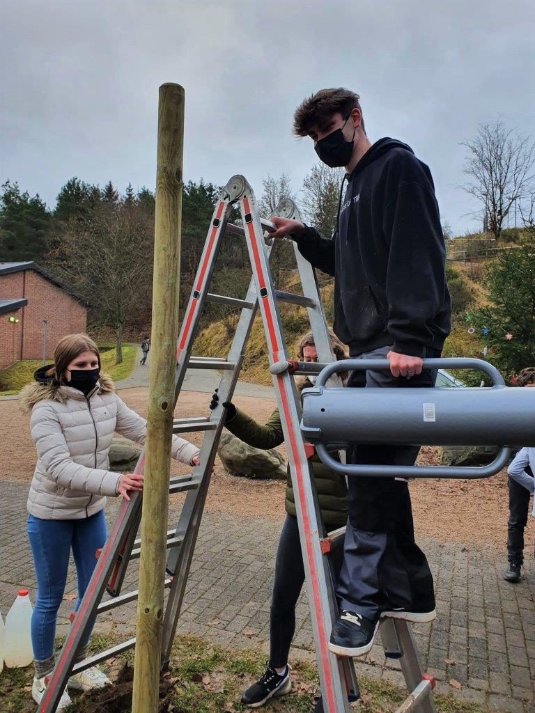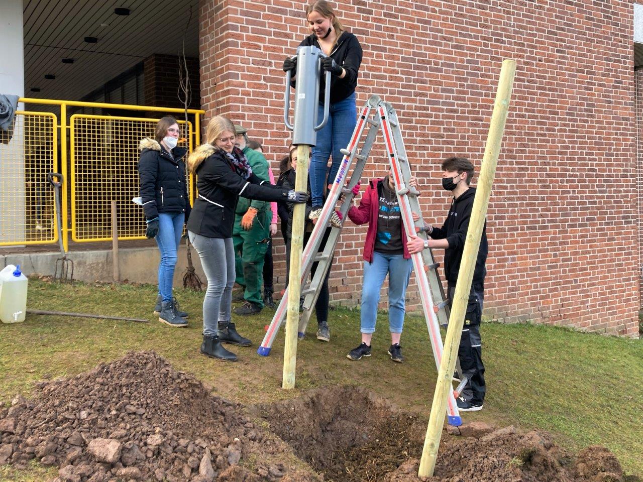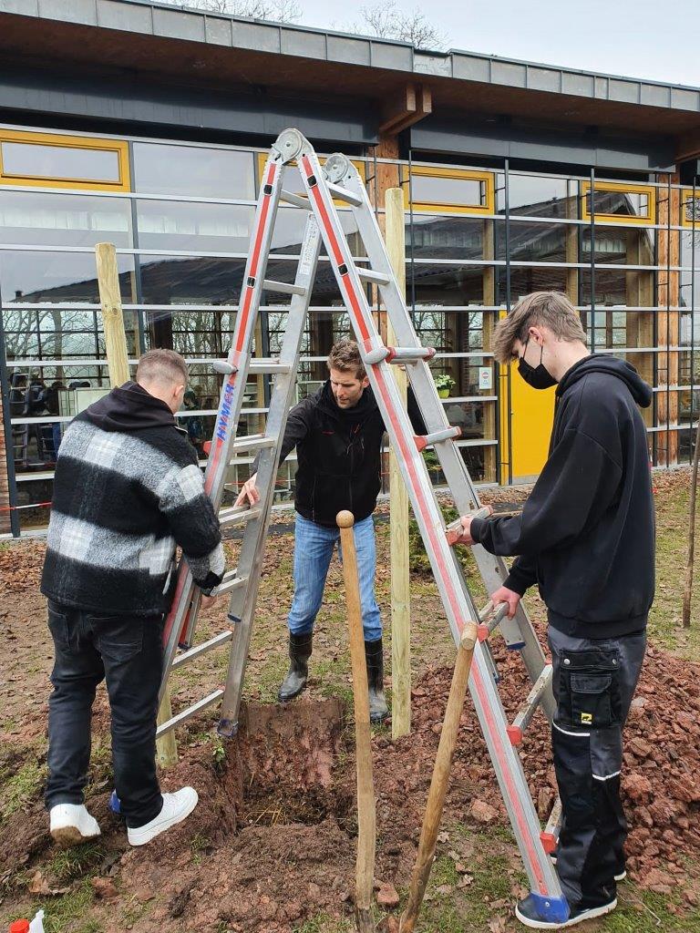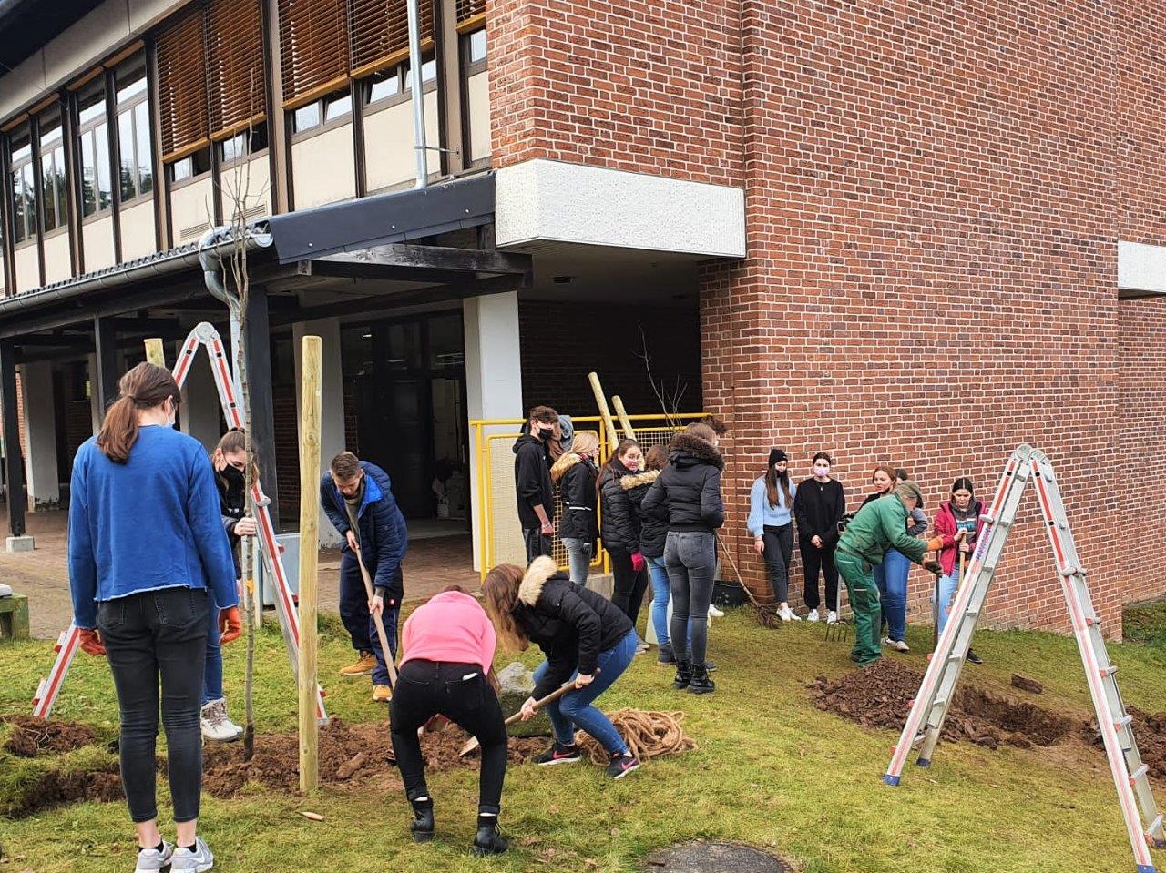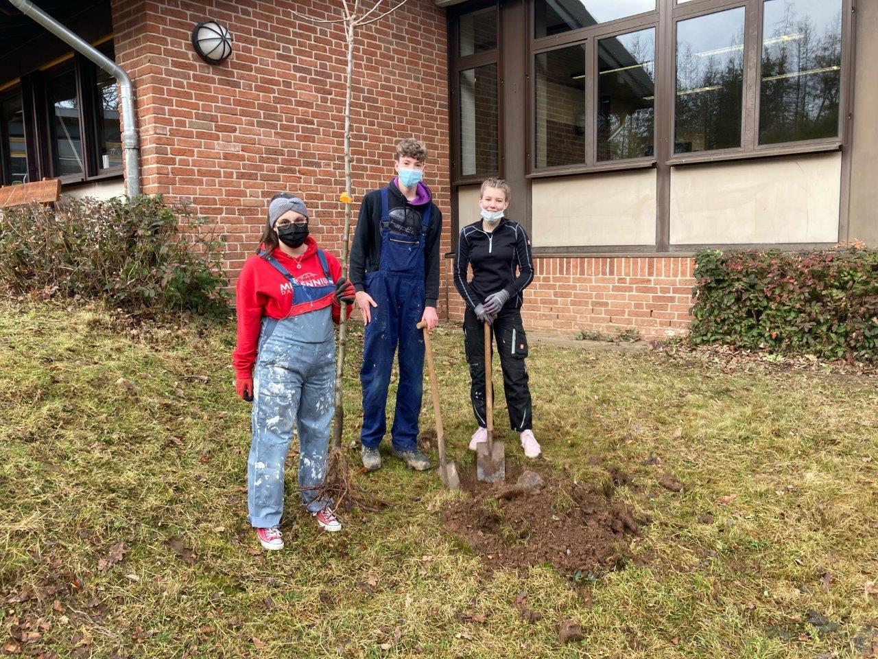 Nun stehen vier Apfel- und zwei Birnbäume auf dem Schulgelände der CFS.
