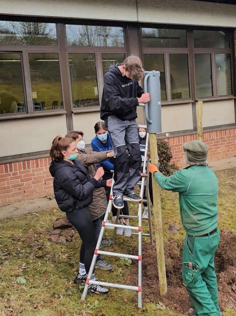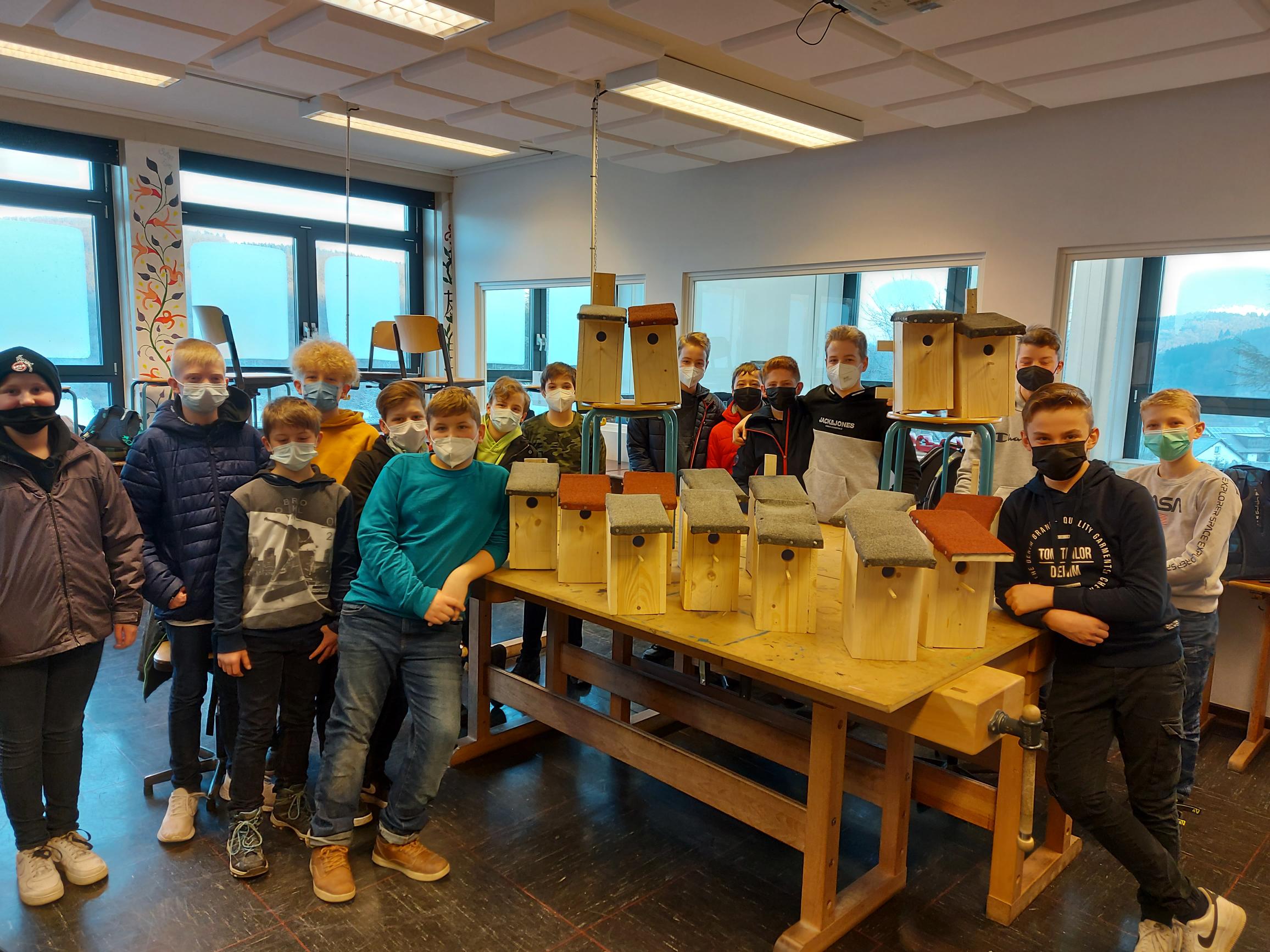 Der Technikkurs der Klassen 7e und 7f hat sein erstes großes Projekt erfolgreich abgeschlossen. Die 16 Schüler des Kurses haben weitestgehend eigenständig einen Nistkasten für heimische Vogelarten gebaut.