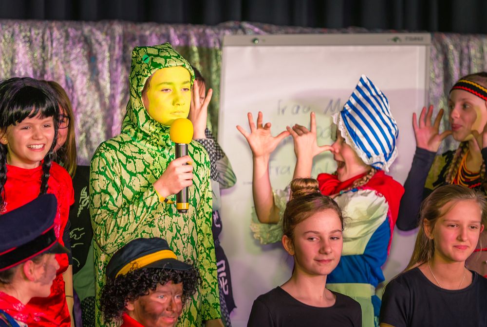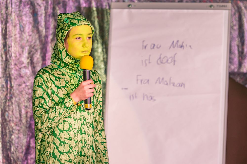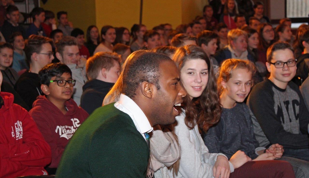 Mit dem Besuch des White Horse Theatre konnte auch in diesem Jahr die lange Tradition der Auftritte der englischsprachigen Theatergruppe an der Clara-Fey-Schule fortgeführt werden. In diesem Schuljahr standen erneut zwei Aufführungen auf dem Programm, und mit beiden Vorstellungen wusste die Truppe um Eleanor, Dominique, Devane und James zu begeistern.