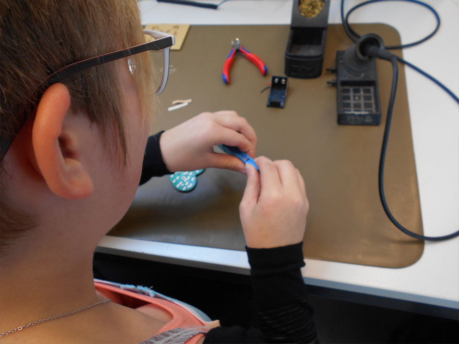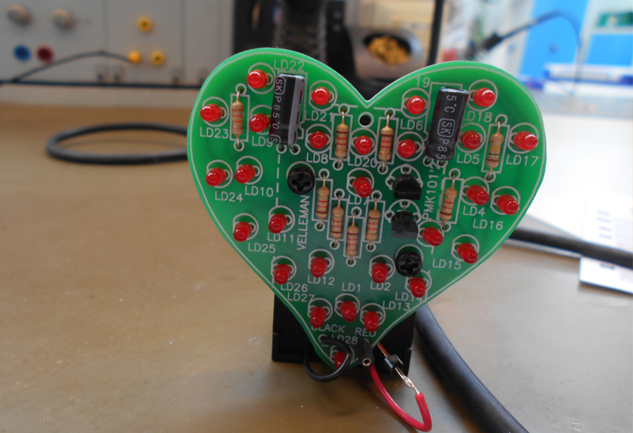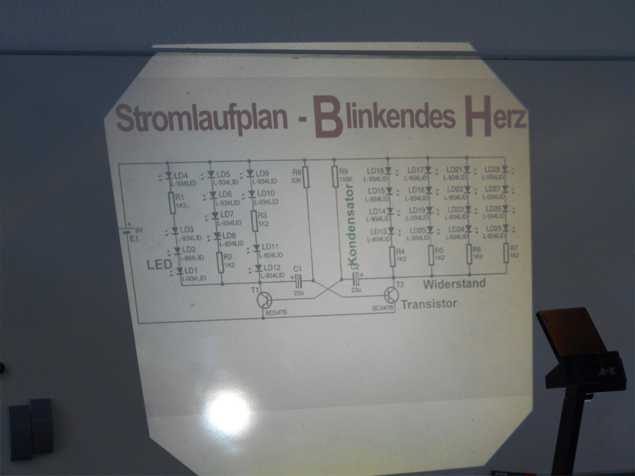 Nach der Fertigstellung des Projekts bekamen wir eine 9V Batterie und konnten diese anschließen. Wir stellten fest, dass das Herz, welches wir löteten, im Herzrhythmus blinkte. Dieses konnten wir dann auch mit nach Hause nehmen.