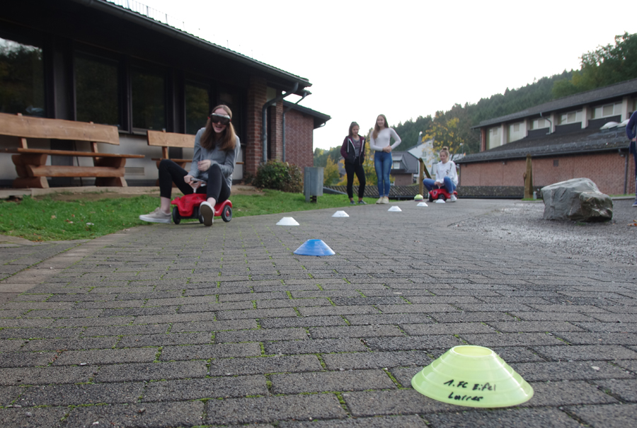 Unser Tag begann um 08:30 Uhr am CFG. Zuerst haben wir mit Frau Jäckel und Frau Lantin die verschiedenen Alkoholbrillen getestet. Wir haben die Brillen ganz normal angezogen und danach einen Parkour mit Bobycars gemacht.