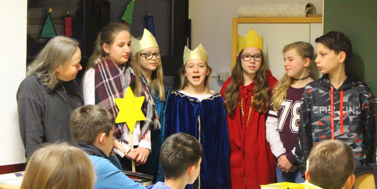 Am 9. Januar zogen die CFG-Sternsinger der Klasse 6b festlich gekleidet und mit einem Stern vorneweg durch die Schule. Allen Klassen der Jahrgangsstufe 5 und 6 brachten sie den Segen „Christus mansionem benedicat“ (Christus segne dieses Haus).