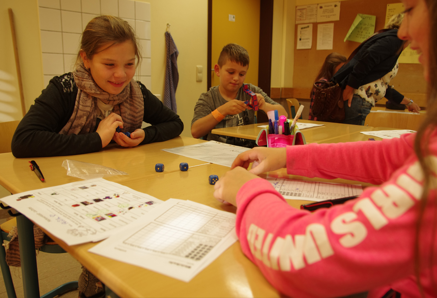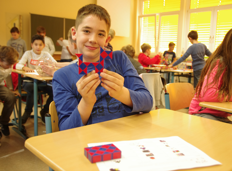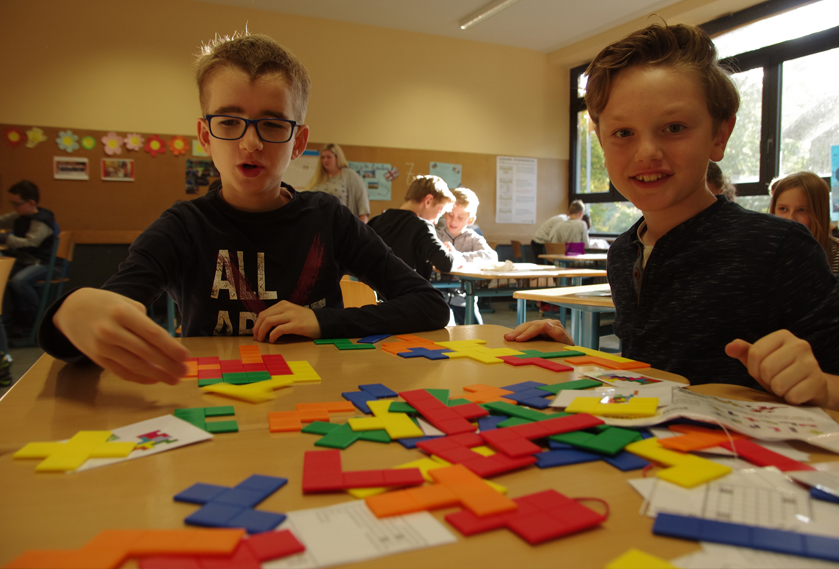Den ganzen Vormittag wird hier gemeinsam geknobelt und gerätselt. Ganz verschiedene Spiele, die wesentlich, jedoch nicht so offensichtlich mit Mathematik zu tun haben, stehen an verschiedenen Stationen im Mittelpunkt: Streichholzspiele, Tangram, Cubo- und Soma-Würfel ect. Am Schluss bewerten die Schülerinnen und Schüler ihren Tag. Unter anderem wird das beliebteste Spiel gekürt und das Spiel mit den schlechtesten Noten wird dann im nächsten Jahr wahrscheinlich ausgetauscht.