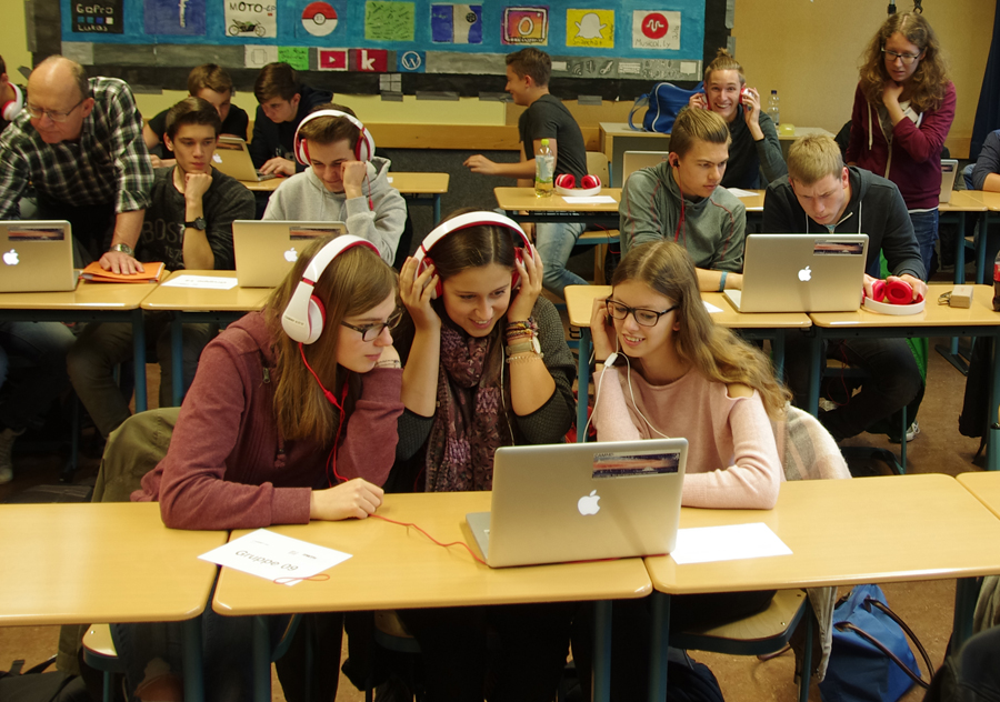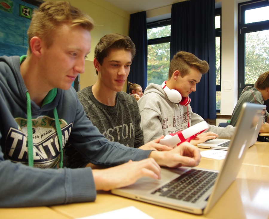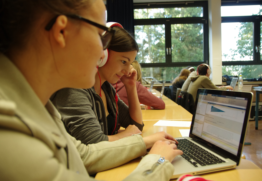Die Mathematik-Leistungskurse der Q1 nahmen am MINT-Tag am Workshop "Mathe trifft Musik" teil. Dieser wurde vom Mathe-CAMMP (Problemlösen mit Hilfe von mathematischer Modellierung und Computereinsatz) der RWTH Aachen angeboten.