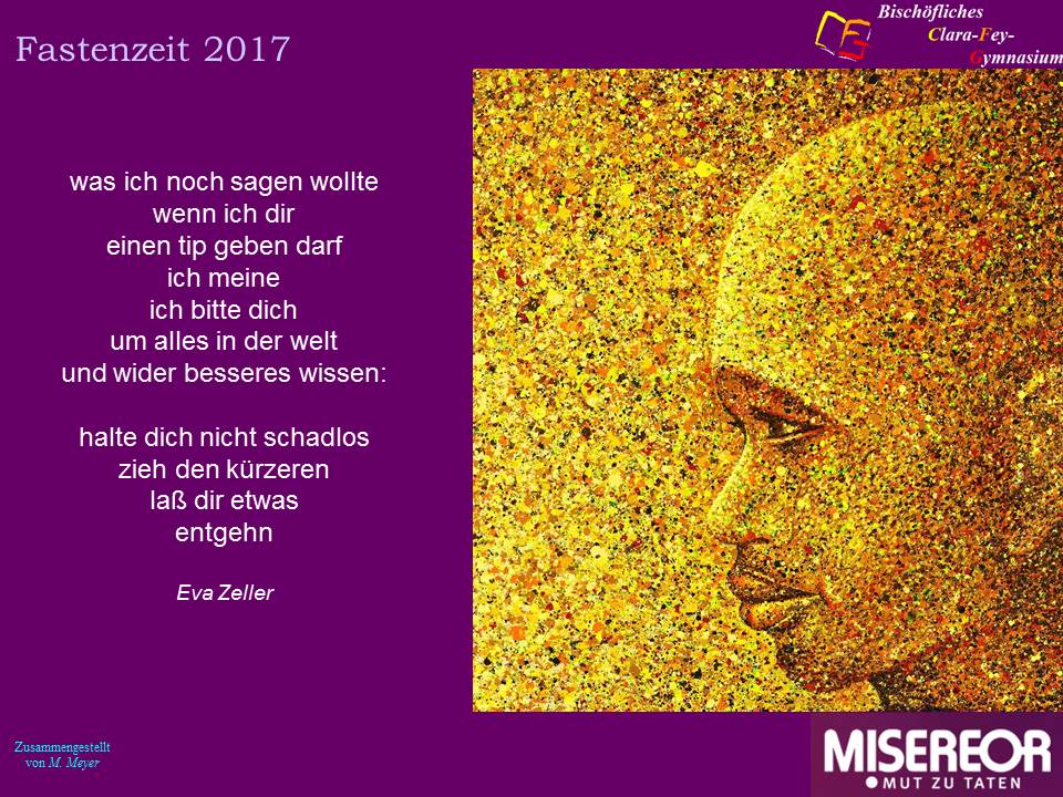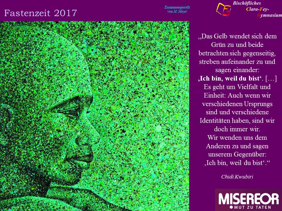 Seit mehreren Jahren ist das CFG Partnerschule von MISEREOR. Diese Kooperation wurde erst kürzlich durch den gemeinsamen Gottesdienst mit Pfr. Pirmin Spiegel und 300 Jugendlichen im Pädagogischen Zentrum wieder eindrucksvoll bestätigt.