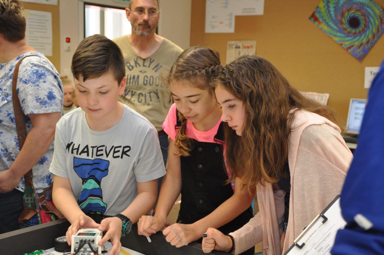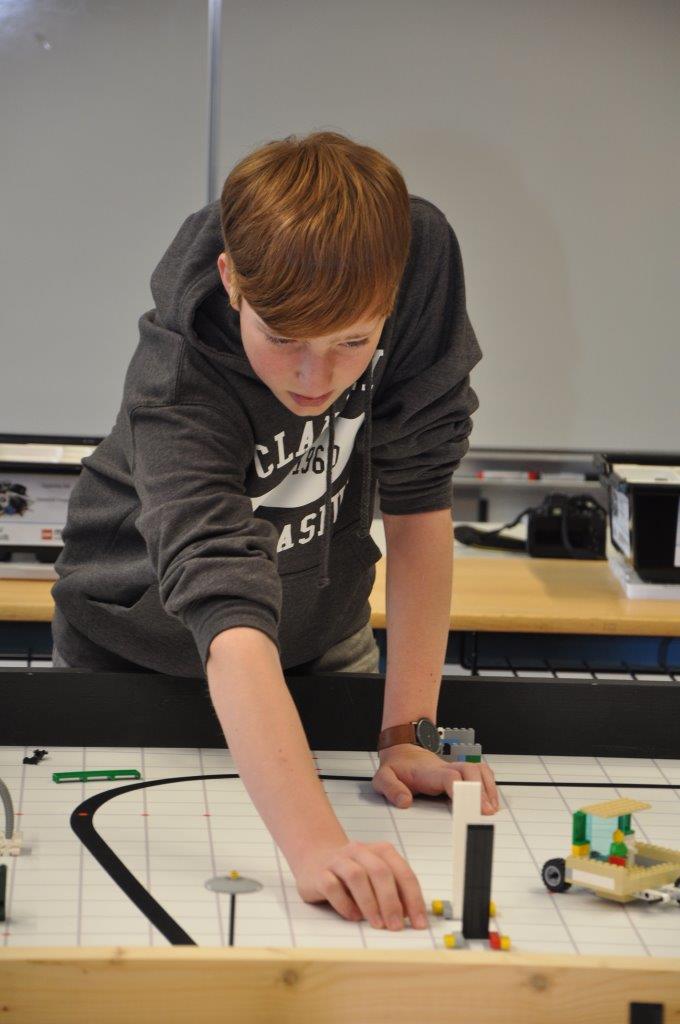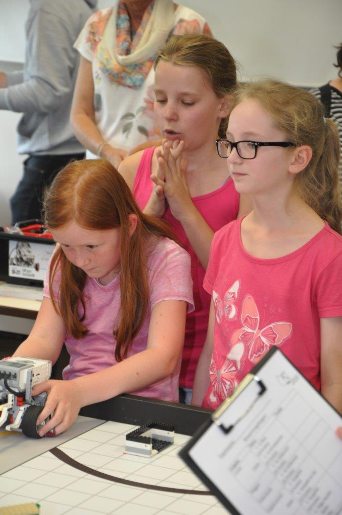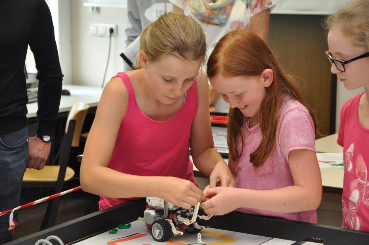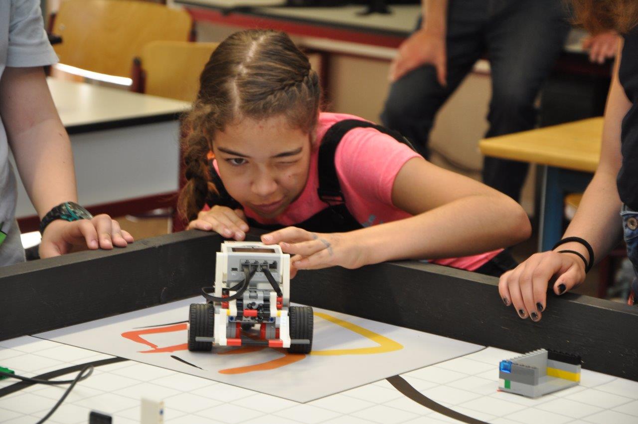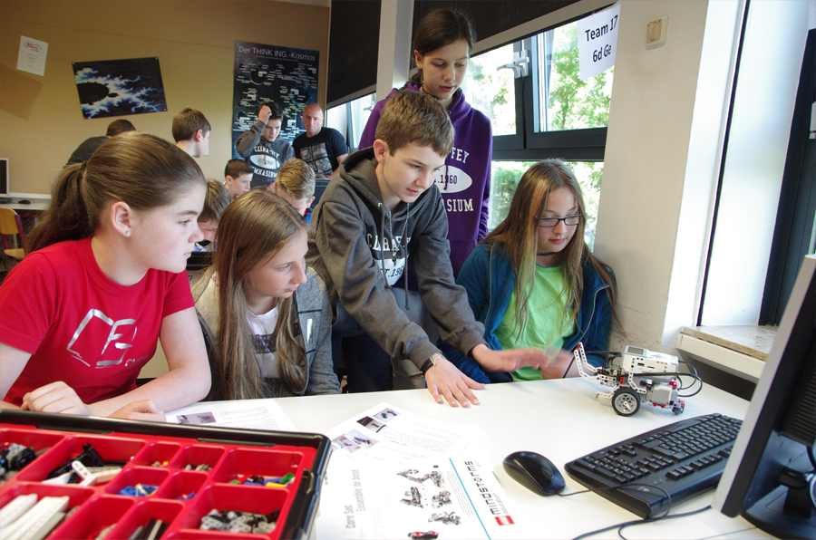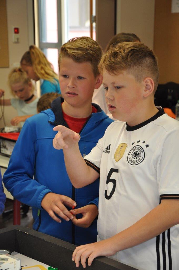 Zusätzlich wurden die Schülerinnen und Schüler der Klassen 5 und 6 über die Arbeit der Robotik-AG und über die Spielregeln des Wettbewerbs informiert, bevor die Betreuer mit ihren Teams in die beiden Computerräume des CFG gingen, um die erste Programmierphase über 1 ½ Stunden anzugehen.