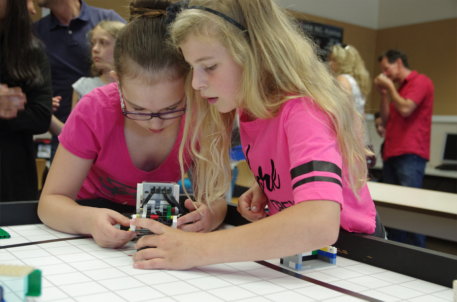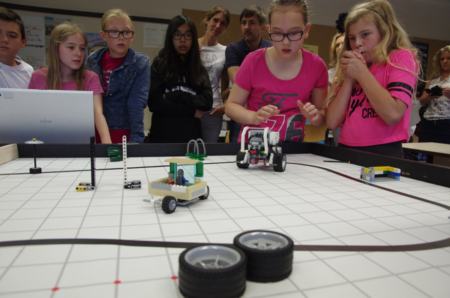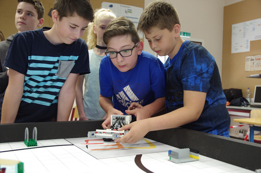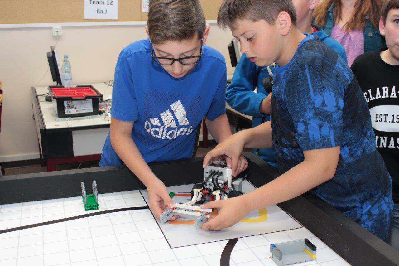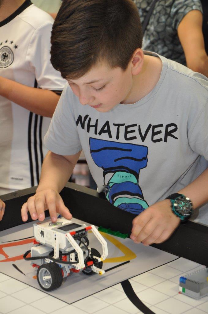 Am vergangenen Samstag, den 6. Mai, war es endlich soweit: Zwei Schüler der Robotik-AG von Herrn Jansen machten sich auf den Weg zum Regional-Wettbewerb der World Robot Olympiad 2017, kurz WRO2017, in Köln. Im Büro-Komplex vom Weltkonzern und Hauptsponsor des Wettbewerbs IBM traten in der „Regular“-Kategorie in drei Altersklassen insgesamt 34 Teams in vier Wettläufen gegeneinander an.