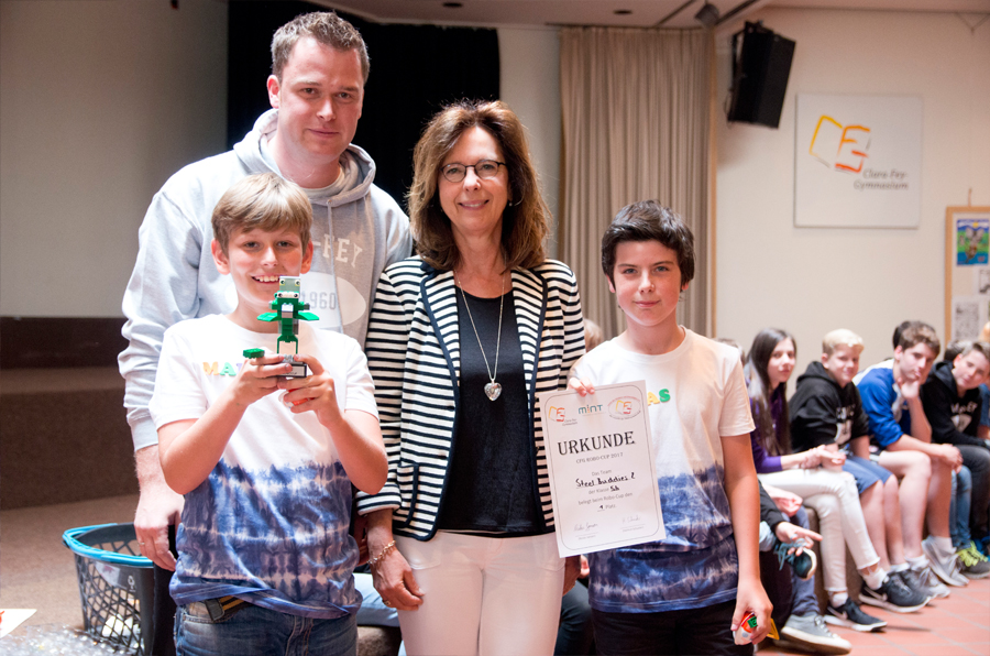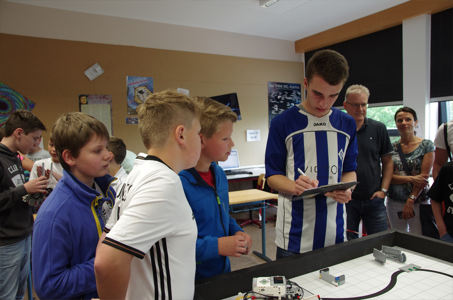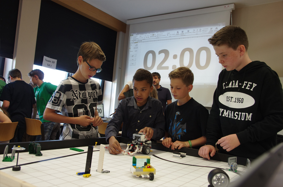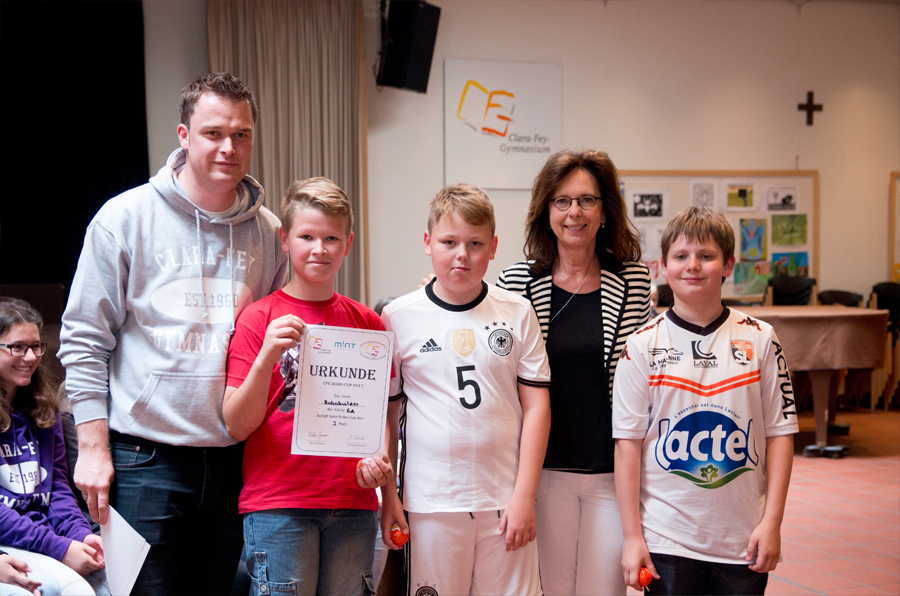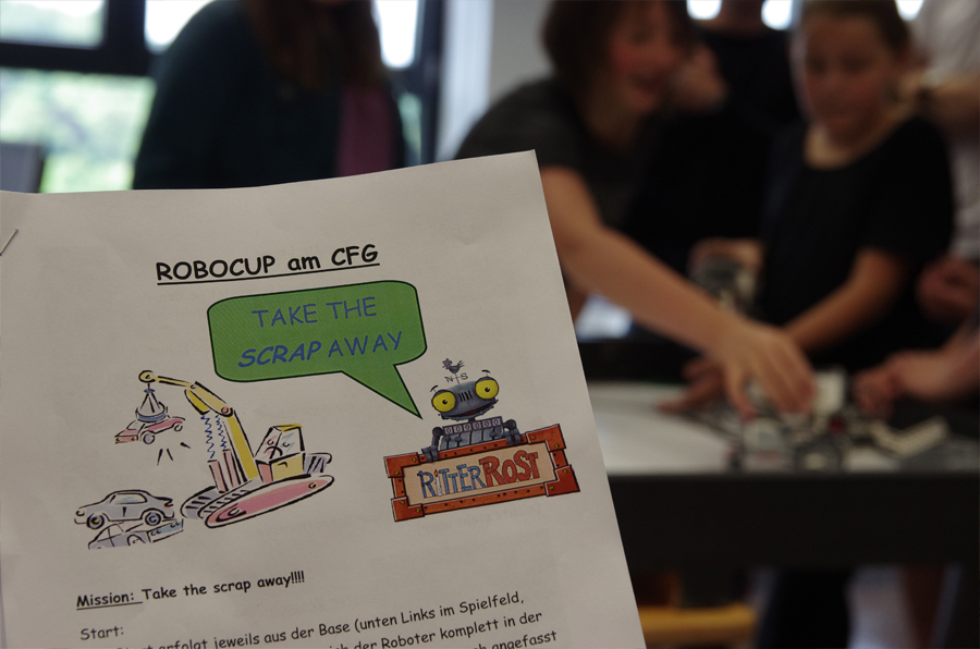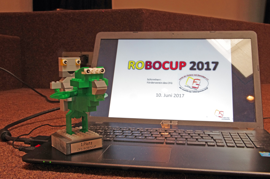 Am Samstag, den 10. Juni, fand am CFG zum zweiten Mal der ROBOCUP statt. Nachdem sich alle Teams, deren Eltern und die Mitglieder der Robotik-AG, die als Betreuer aktiv waren, im PZ eingefunden hatten, wurden sie von unserem Schulleiter Helmut Schuster und Robotik-AG-Leiter Niclas Jansen begrüßt.