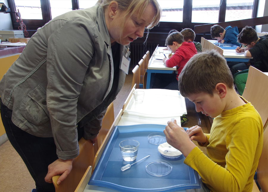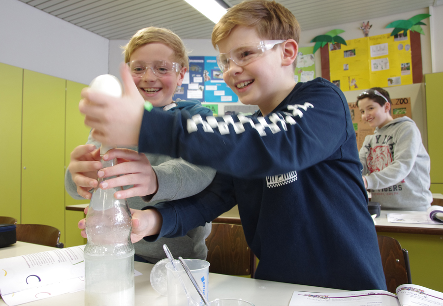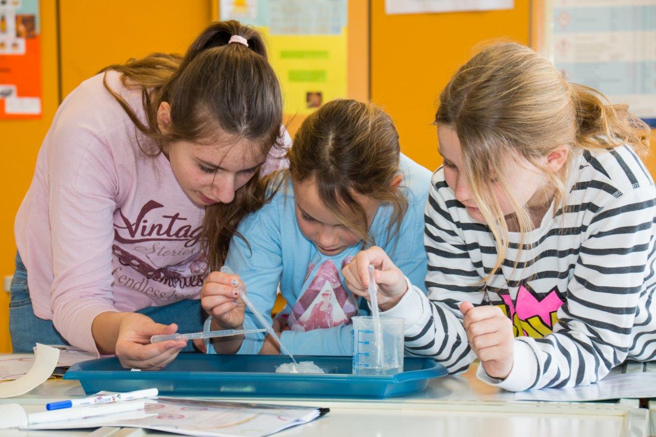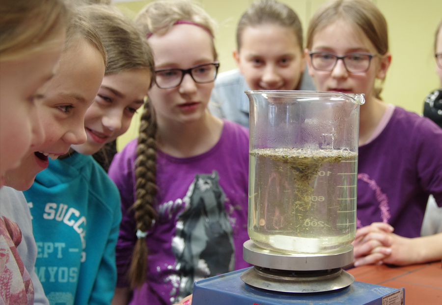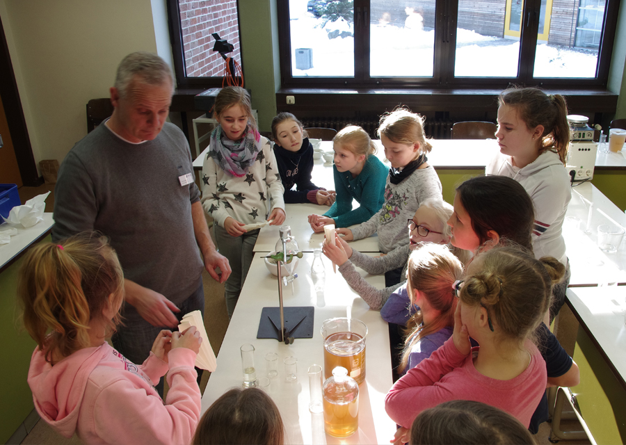 Jungen Schülerinnen und Schülern die naturwissenschaftlichen Fächer Biologie, Chemie und Physik auf spielerische Art und Weise näher zu bringen, das war auch in diesem Jahr das Ziel der Mitarbeiter der drei Fachschaften sowie der Firma Evonik. Im Rahmen dieser Tage der Naturwissenschaften erhielten jeweils zwei Klassen der Jgst. 5 die Möglichkeit, mit Hilfe spannender Experimente die Naturwissenschaften für sich zu entdecken. Sie wurden mit kniffligen Rätseln konfrontiert, die in kreative Geschichten verpackt wurden.