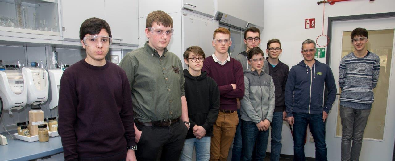 Zum Halbjahresende hatte unser Chemie-Kurs die Möglichkeit, die Peter-Greven GmbH in Bad Münstereifel-Iversheim zu besuchen. Die Lernpartnerschaft mit dem CFG und natürlich die netten Mitarbeiter ermöglichten uns einen sehr interessanten Einblick in die praktische Welt der Chemie, deren theoretische Grundlagen wir im Unterricht besprochen hatten.