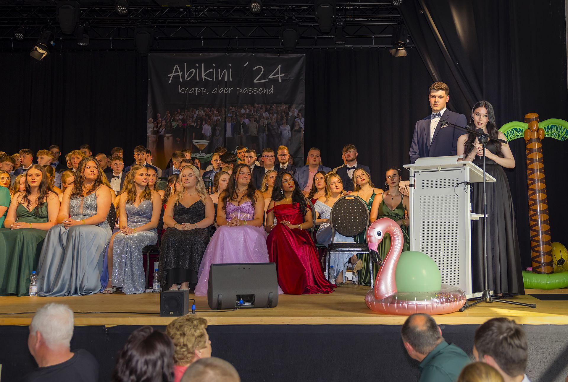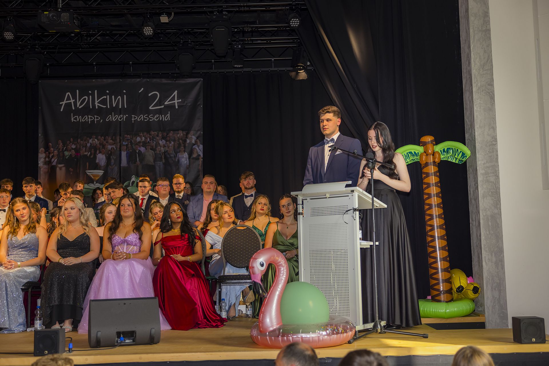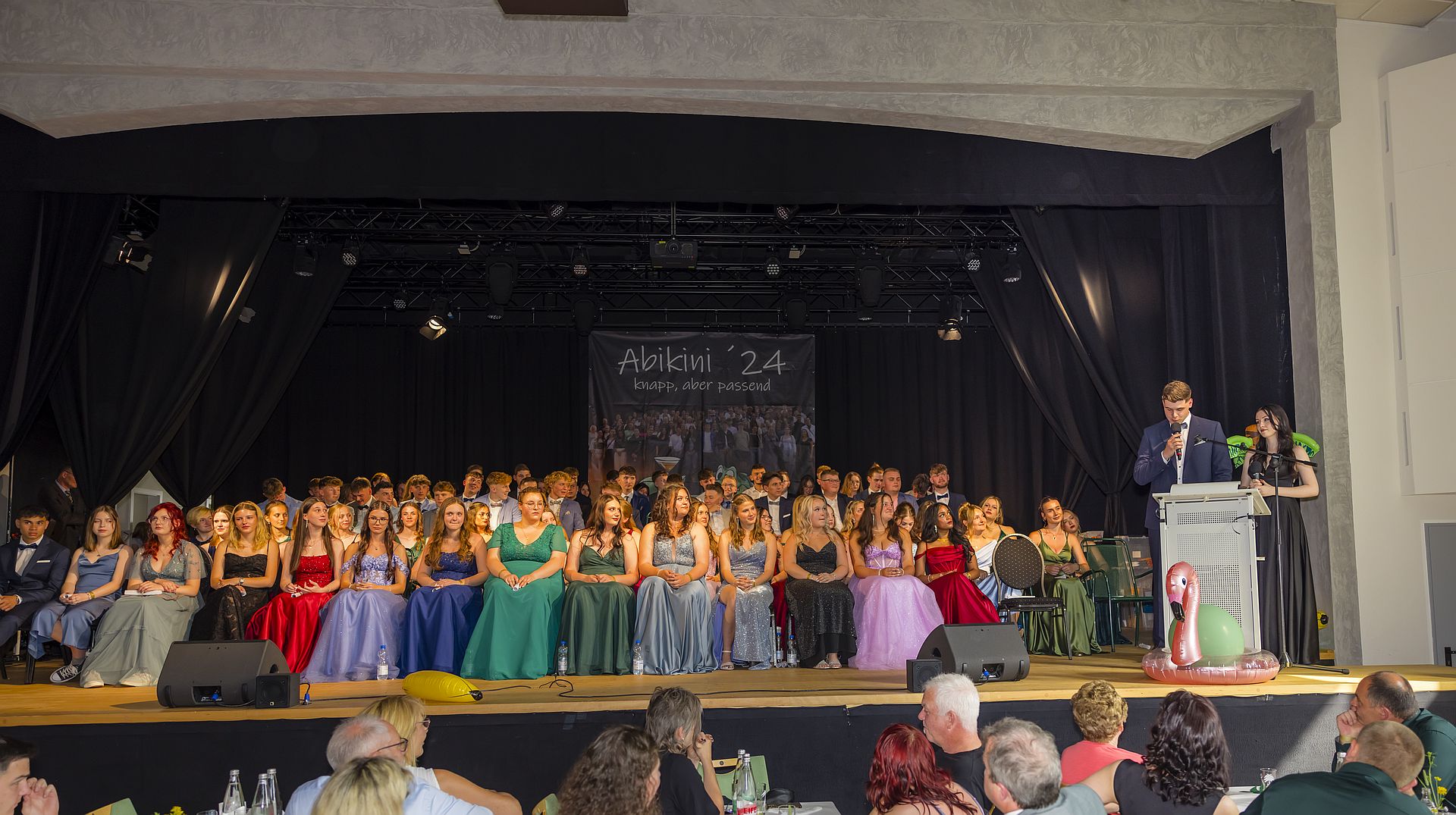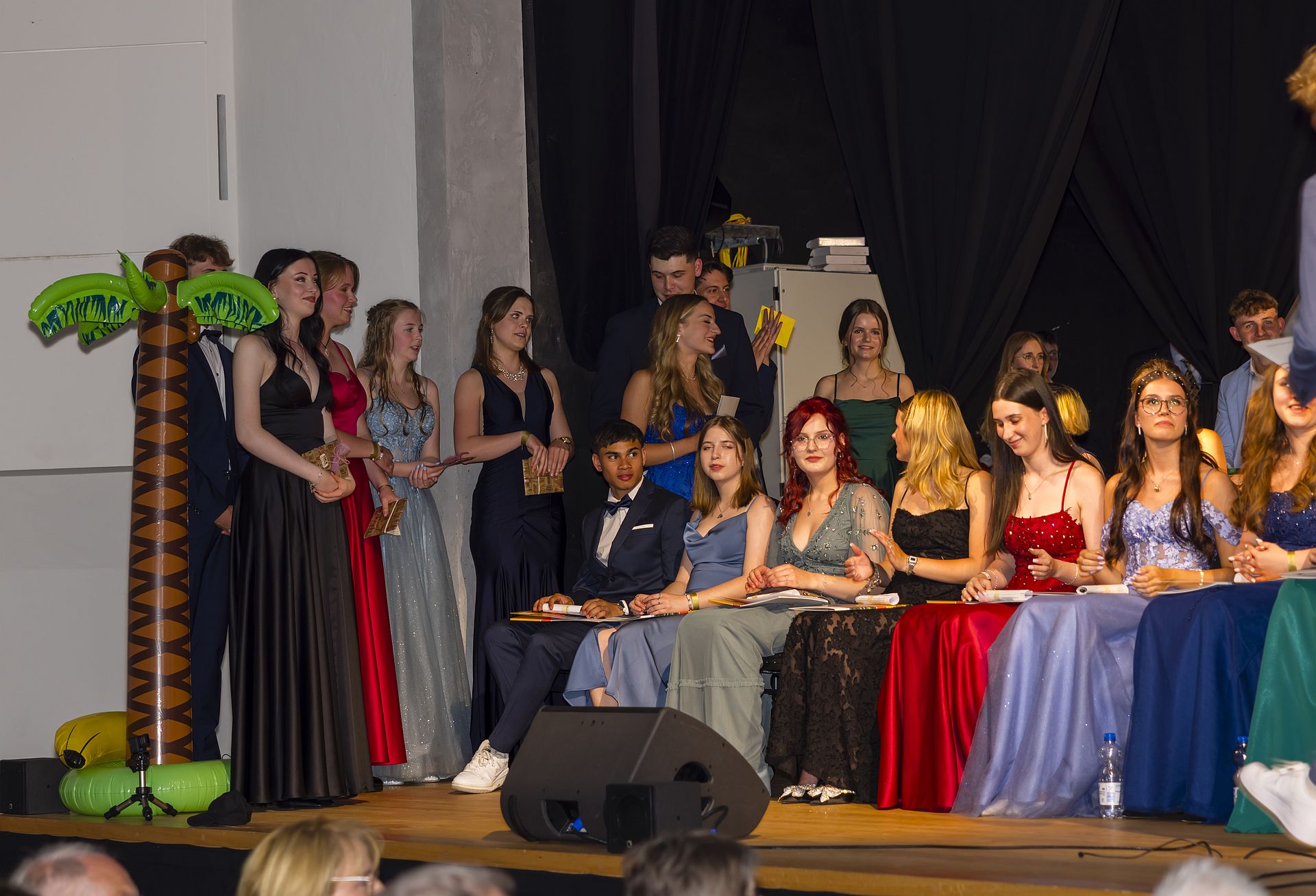 Nach einem Umzug ins Gemünder Kurhaus begann die offizielle Entlassungsfeier mit der Begrüßung durch die Moderatoren des Abends, Hannah Lenz, Abigail Müller und Gordej Kozlov, alle drei aus den beiden Abschlussklassen.