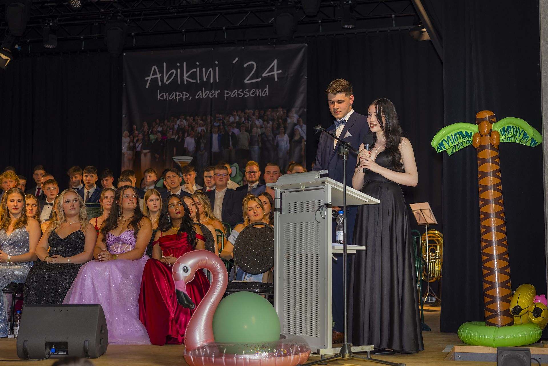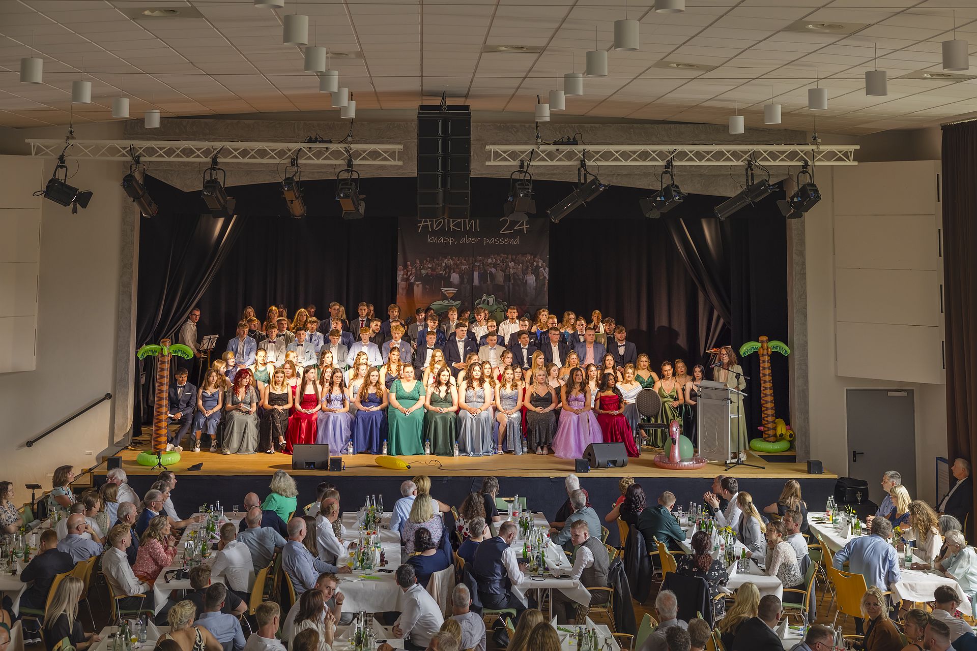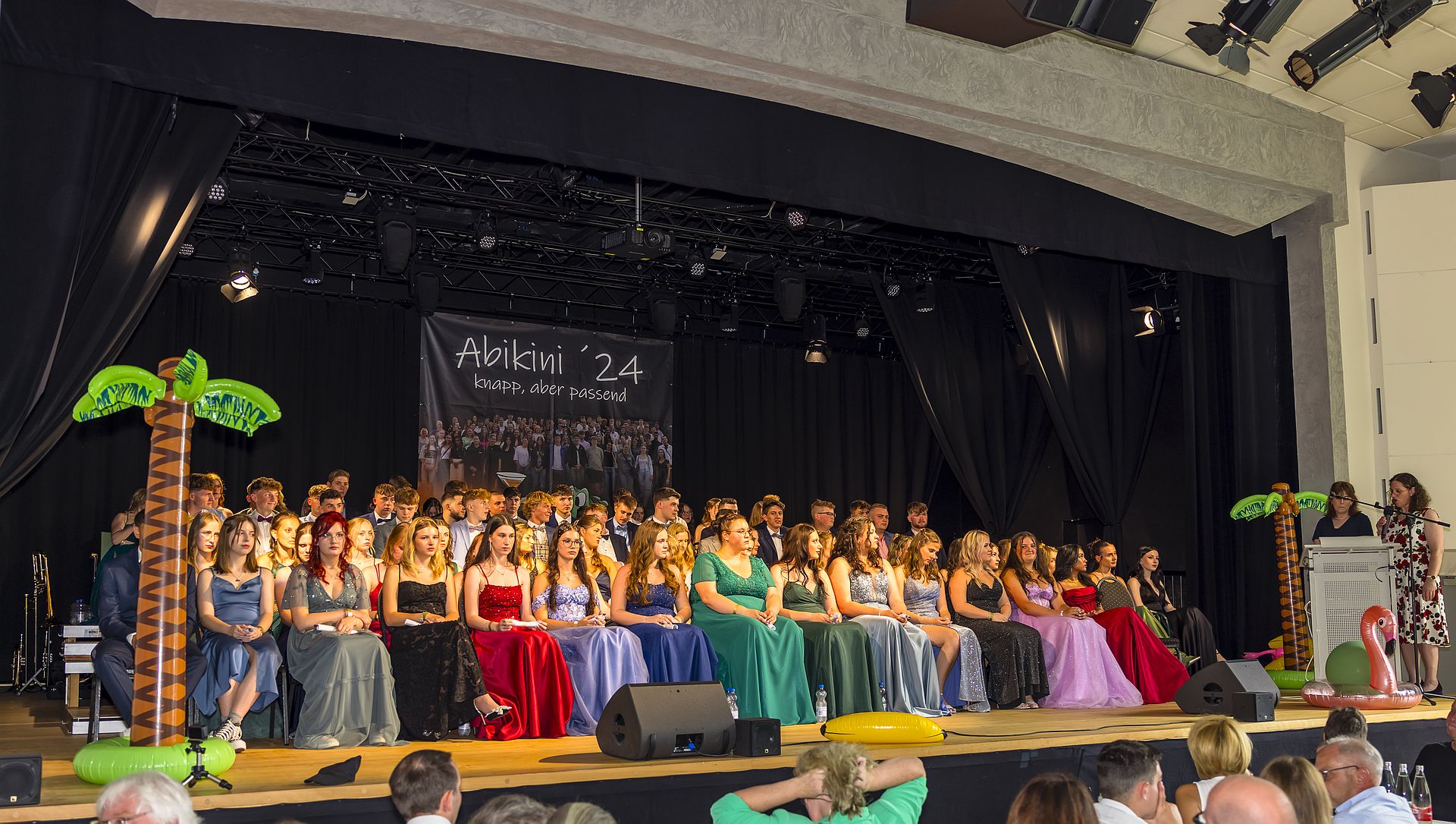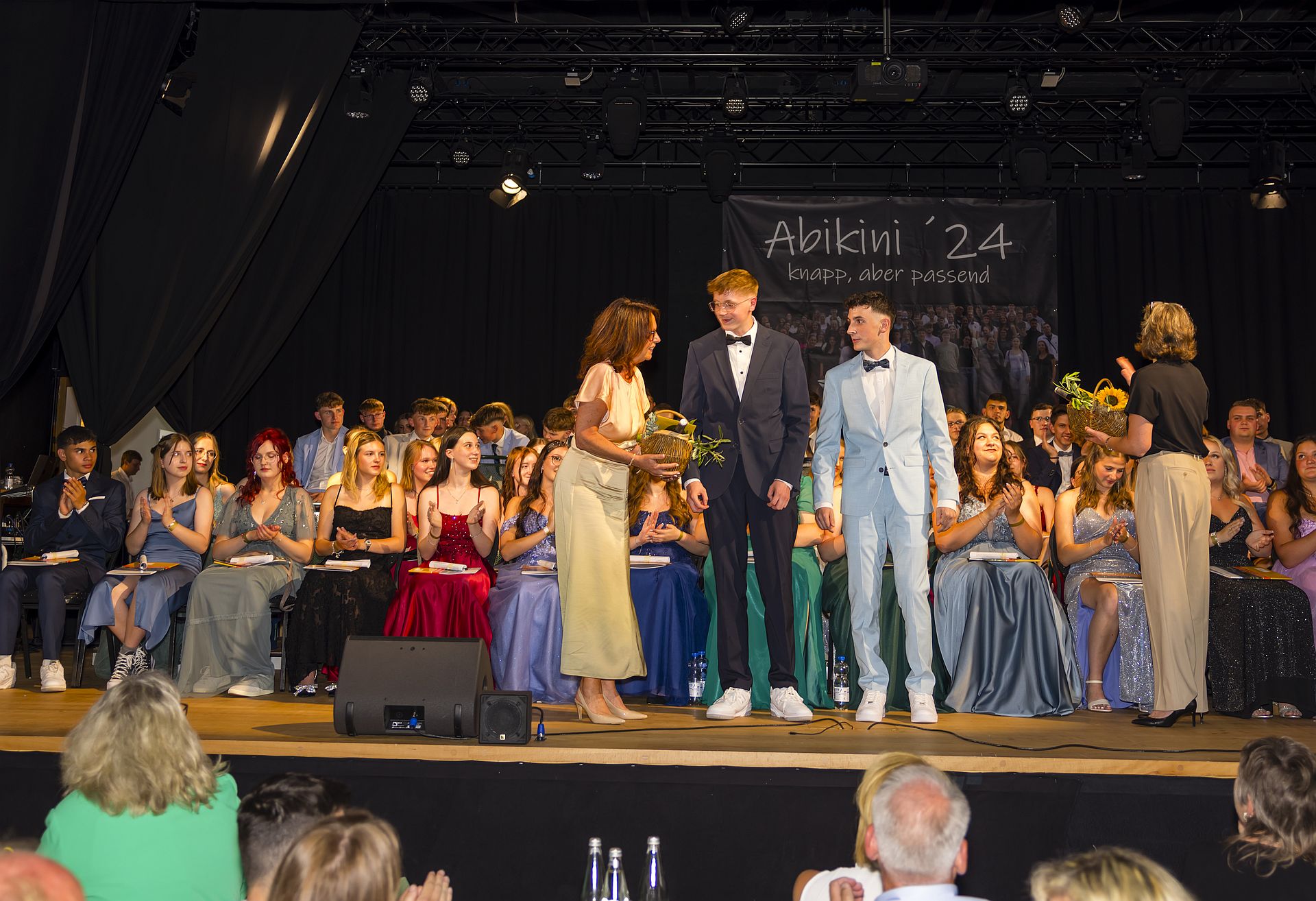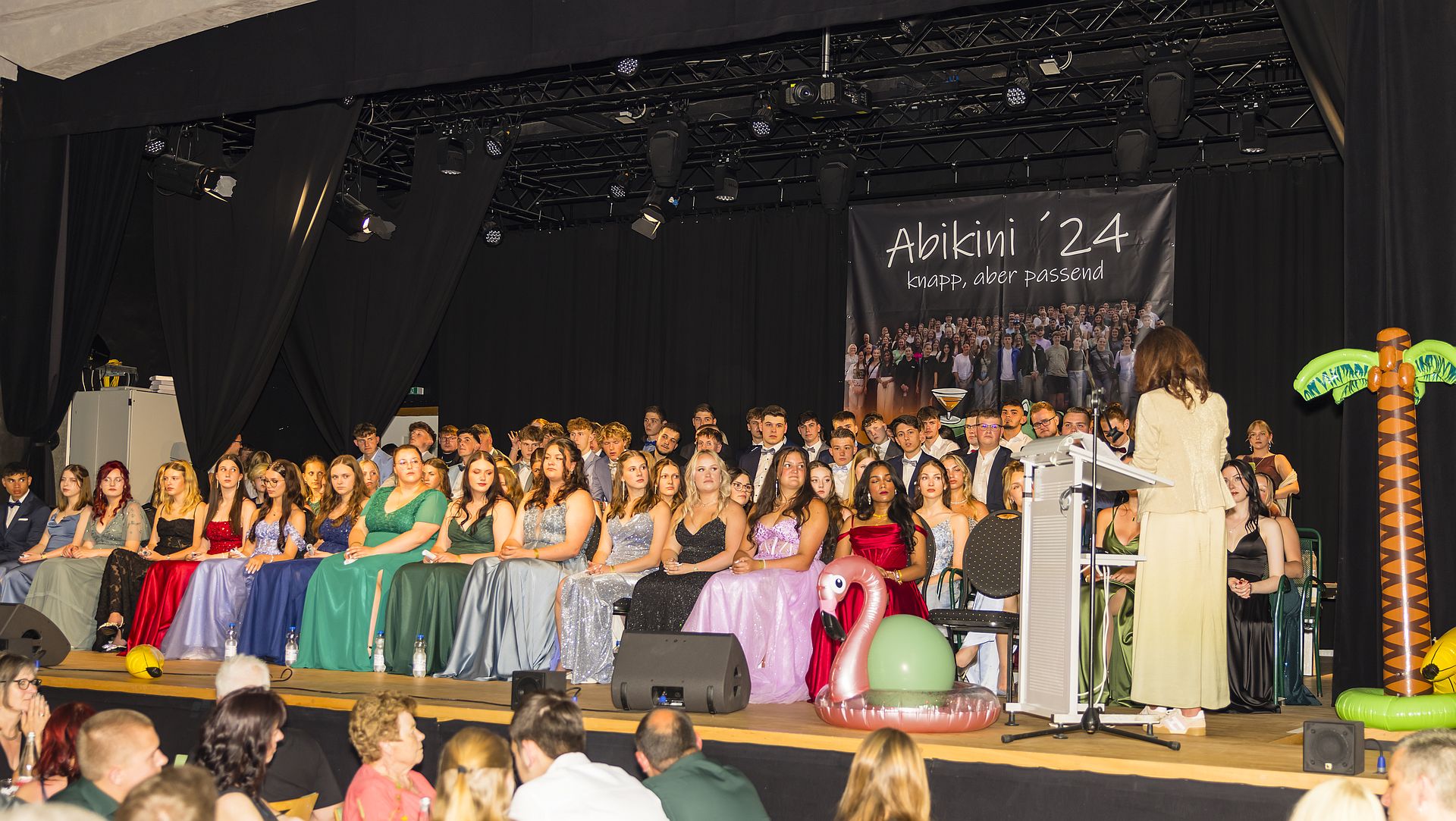 Nach einem Umzug ins Gemünder Kurhaus begann die offizielle Entlassungsfeier mit der Begrüßung durch die Moderatoren des Abends, Hannah Lenz, Abigail Müller und Gordej Kozlov, alle drei aus den beiden Abschlussklassen.
