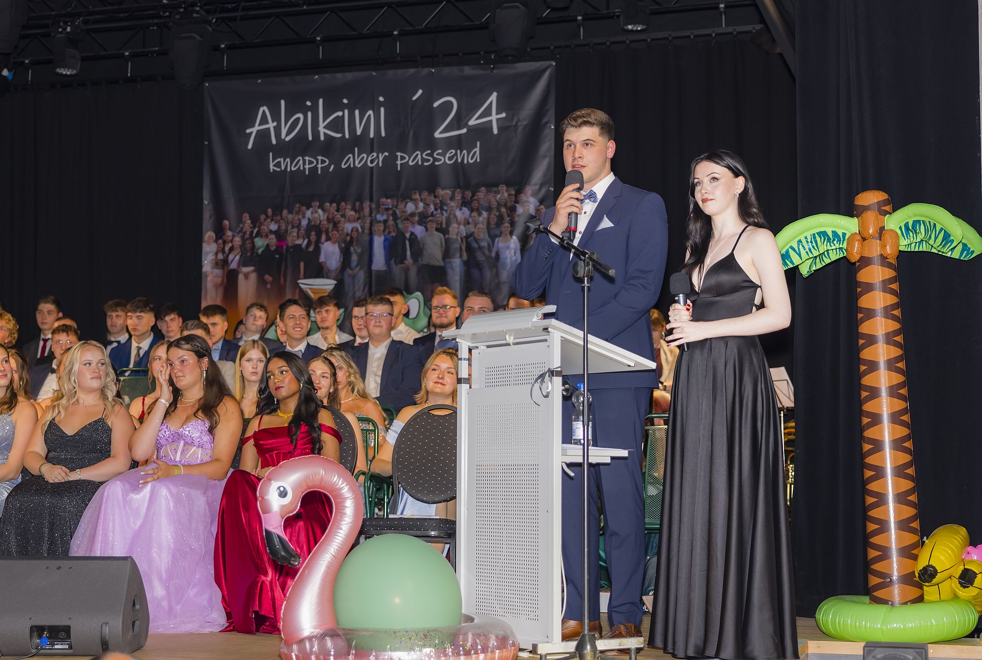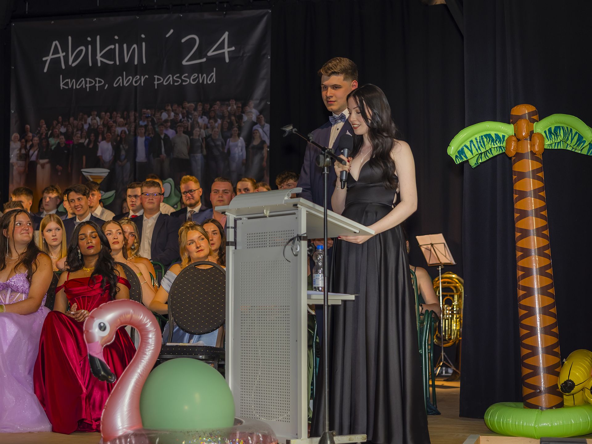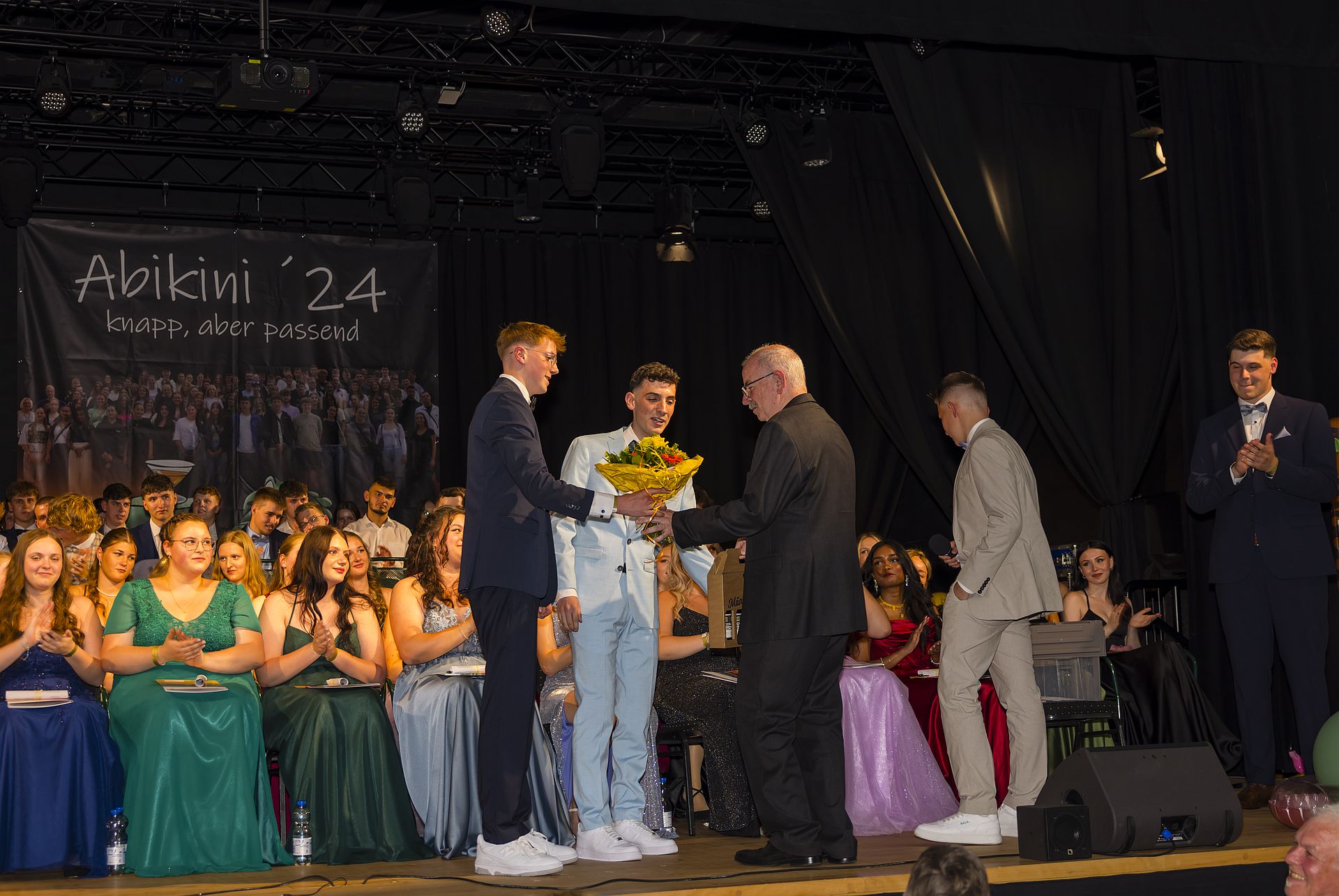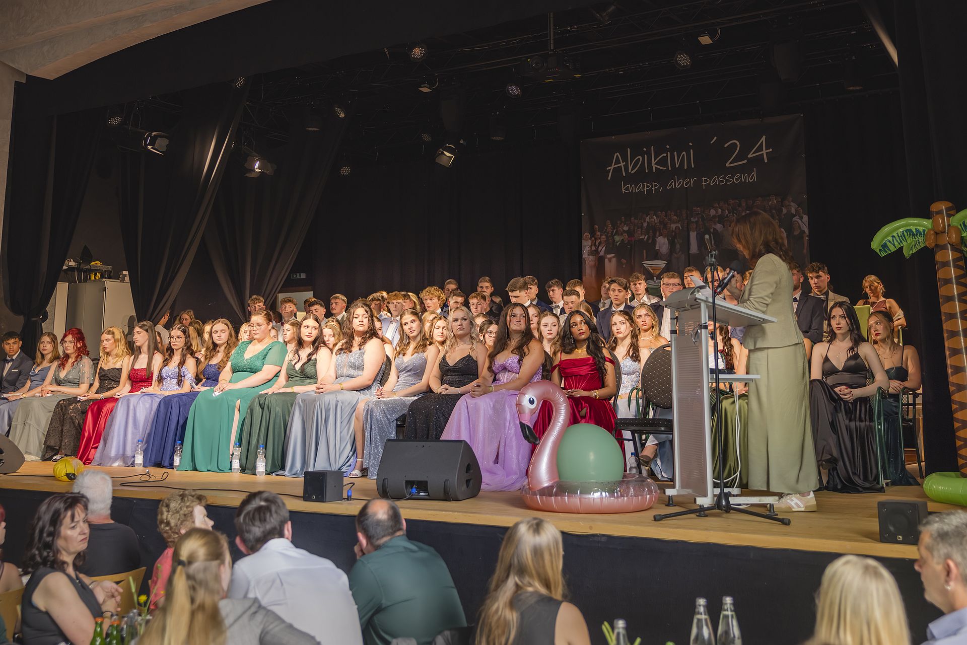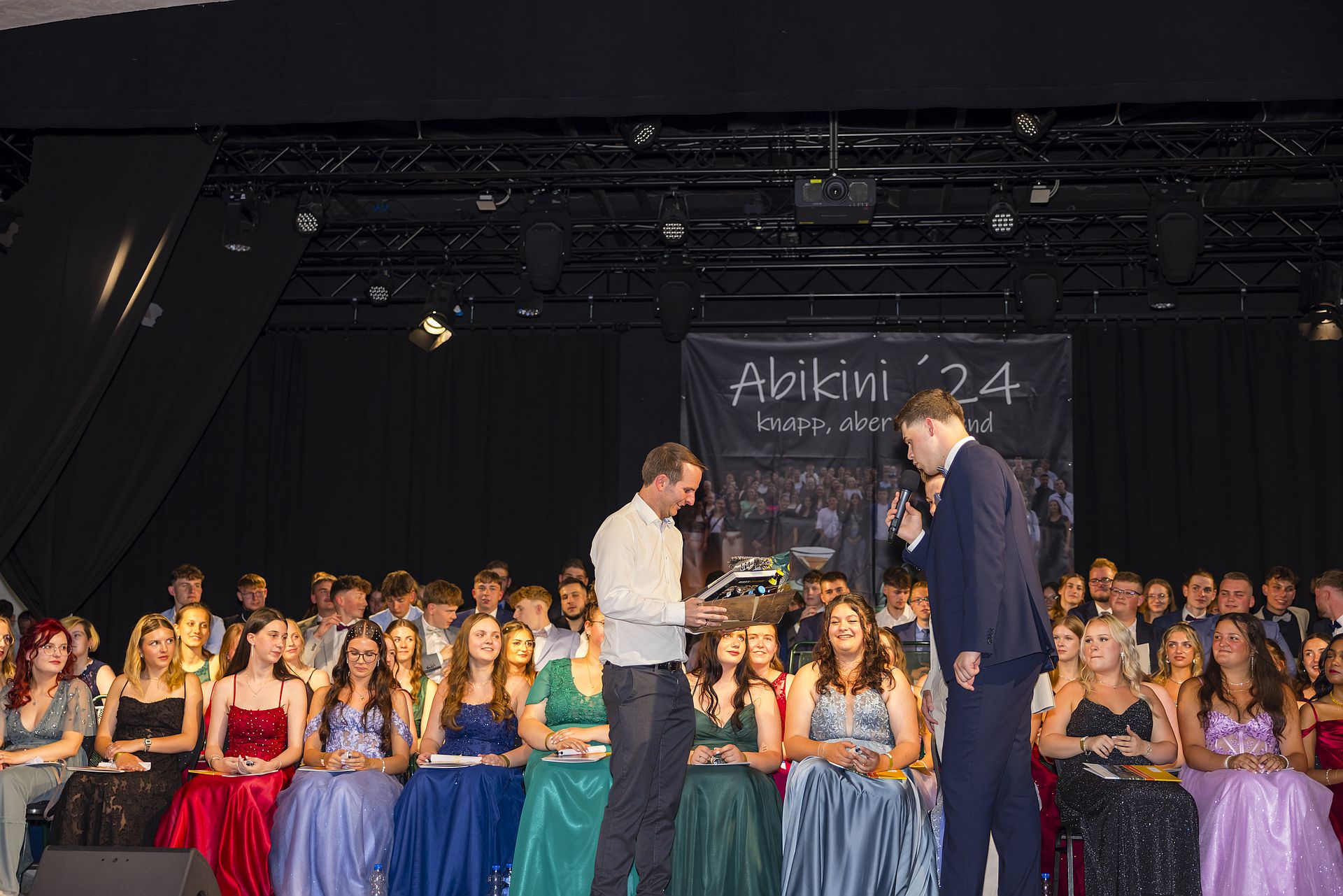 Nach einem Umzug ins Gemünder Kurhaus begann die offizielle Entlassungsfeier mit der Begrüßung durch die Moderatoren des Abends, Hannah Lenz, Abigail Müller und Gordej Kozlov, alle drei aus den beiden Abschlussklassen.