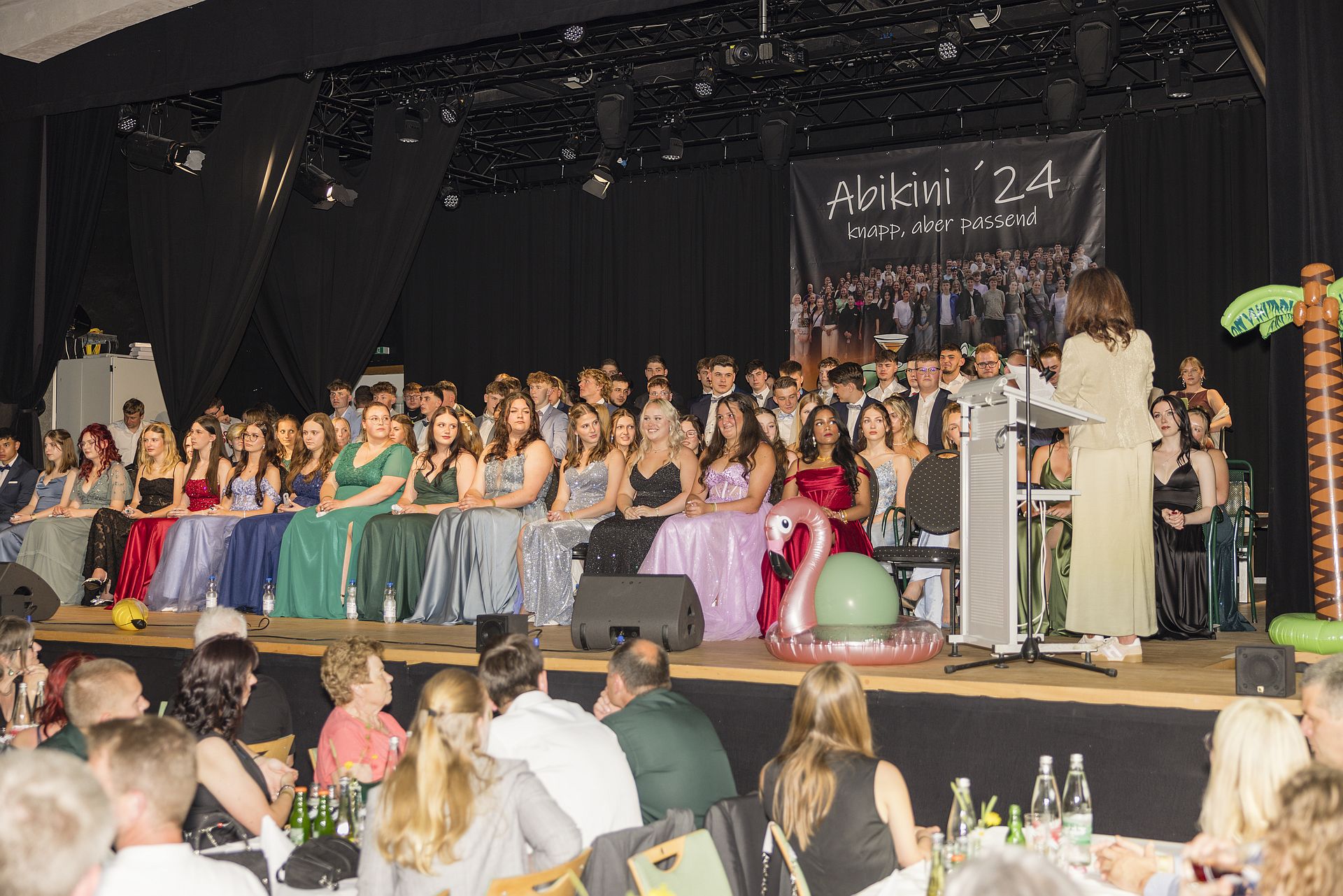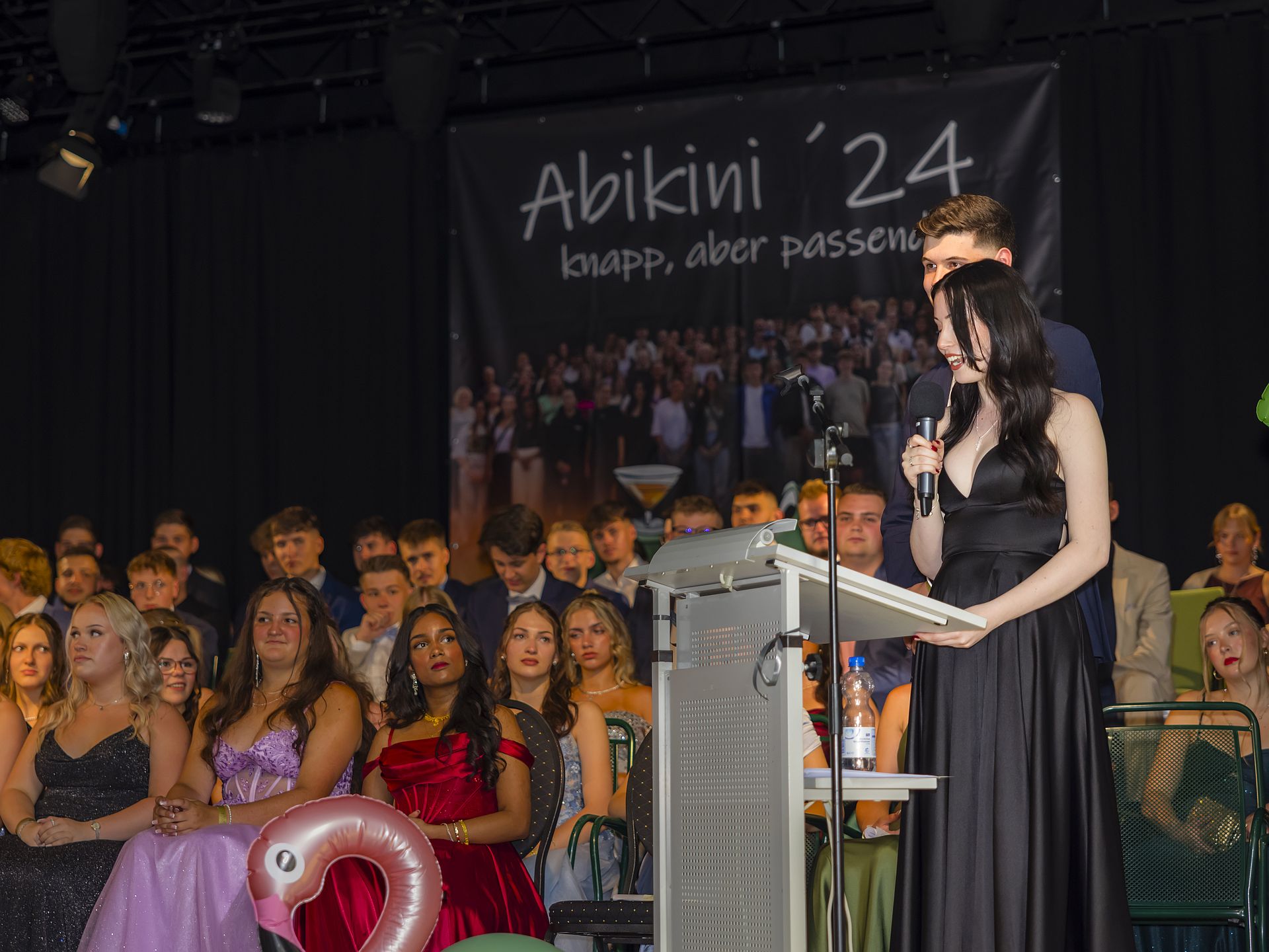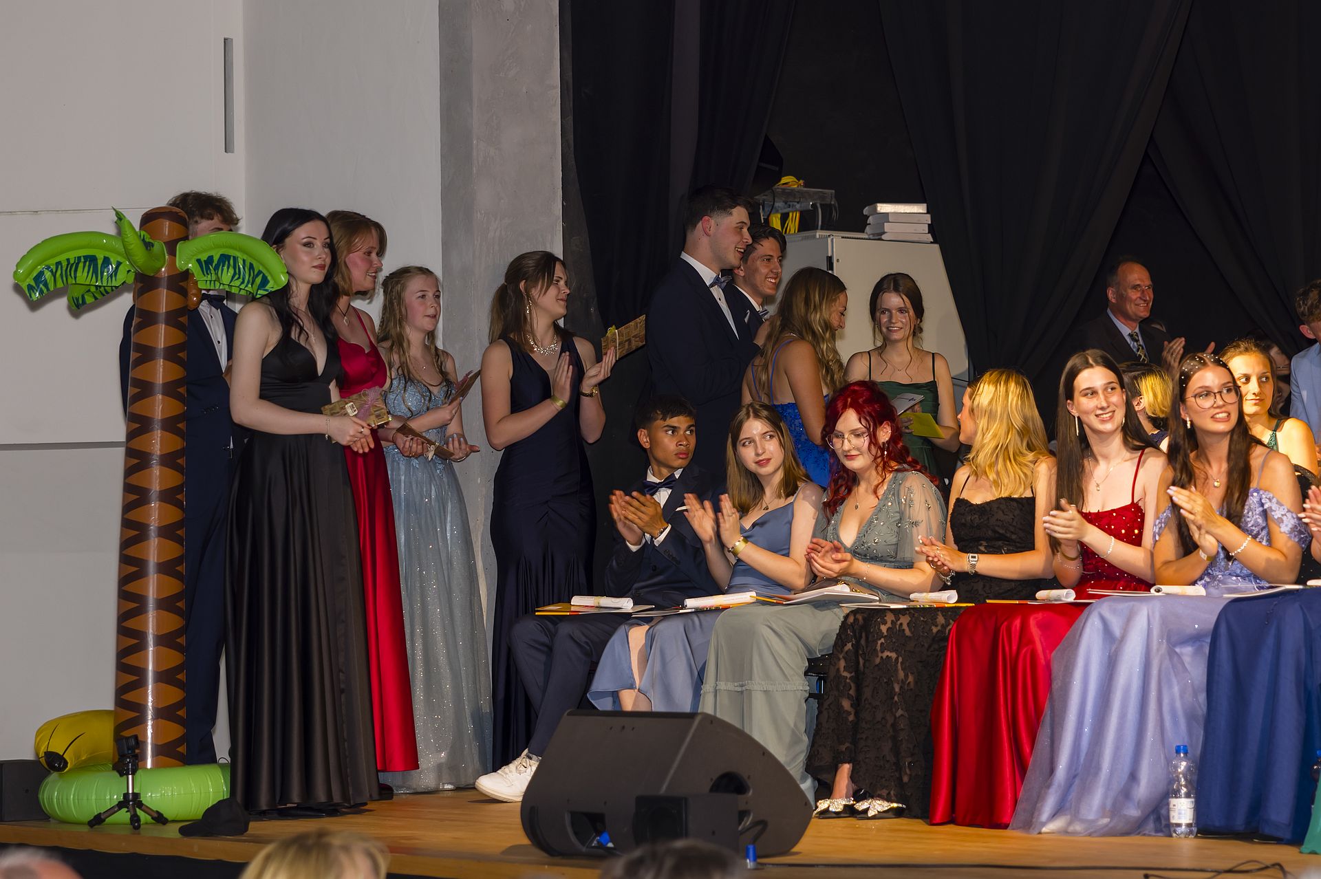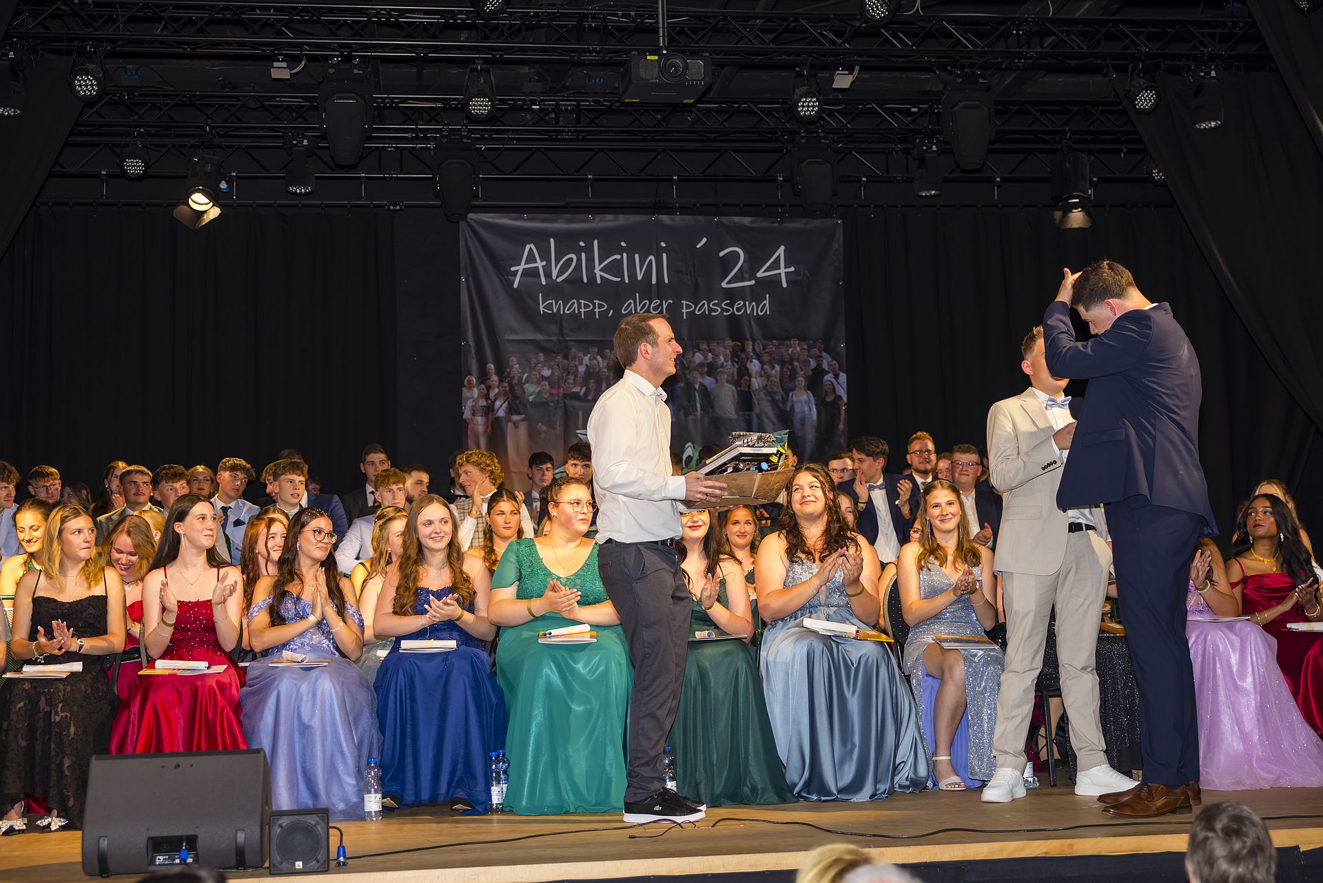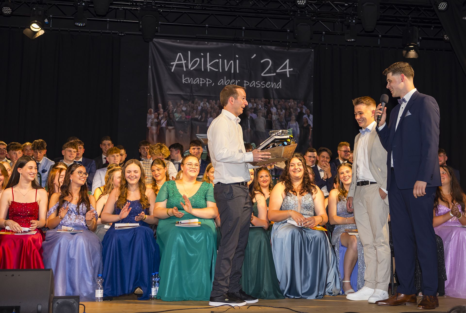 Nach einem Umzug ins Gemünder Kurhaus begann die offizielle Entlassungsfeier mit der Begrüßung durch die Moderatoren des Abends, Hannah Lenz, Abigail Müller und Gordej Kozlov, alle drei aus den beiden Abschlussklassen.