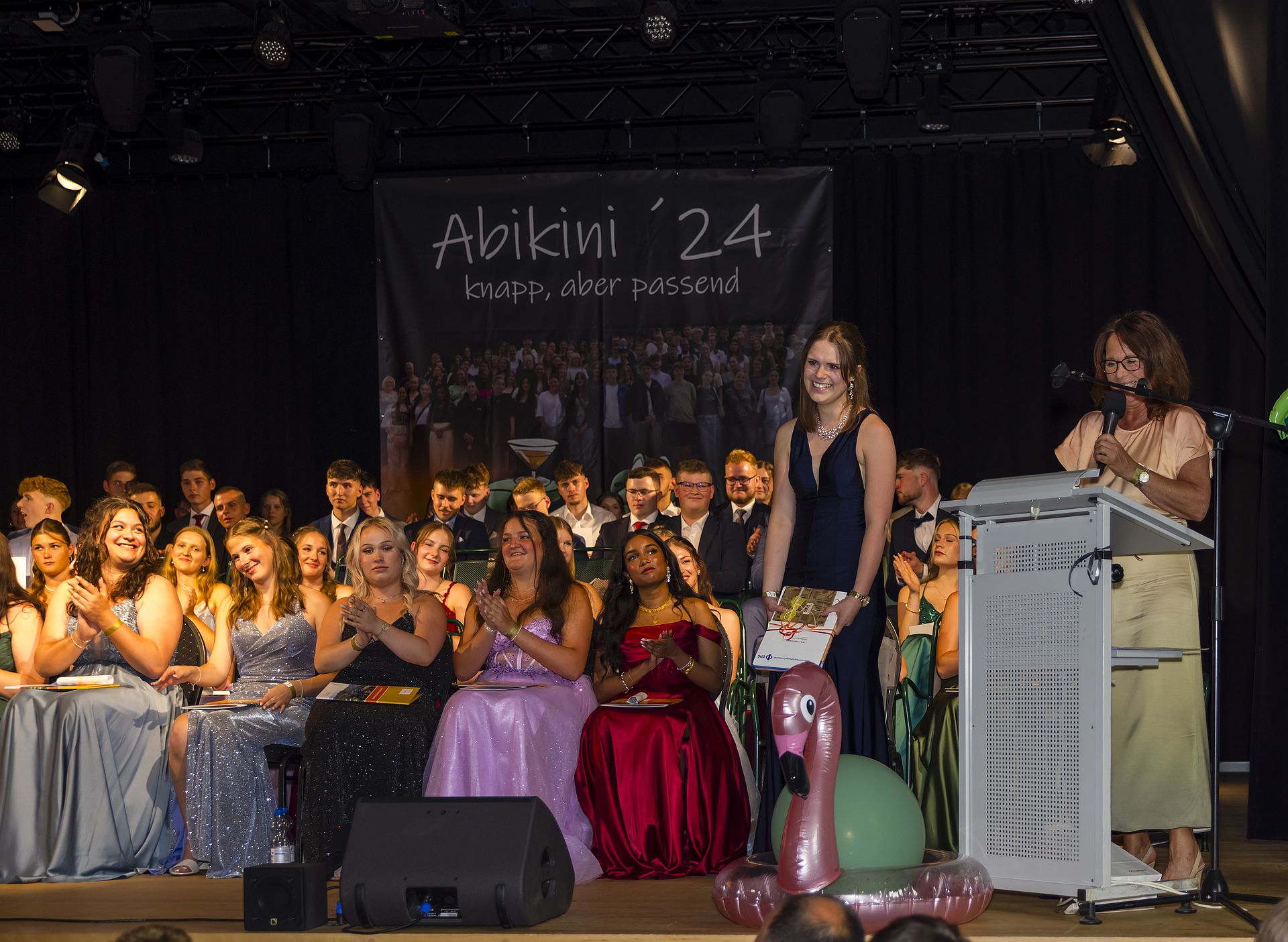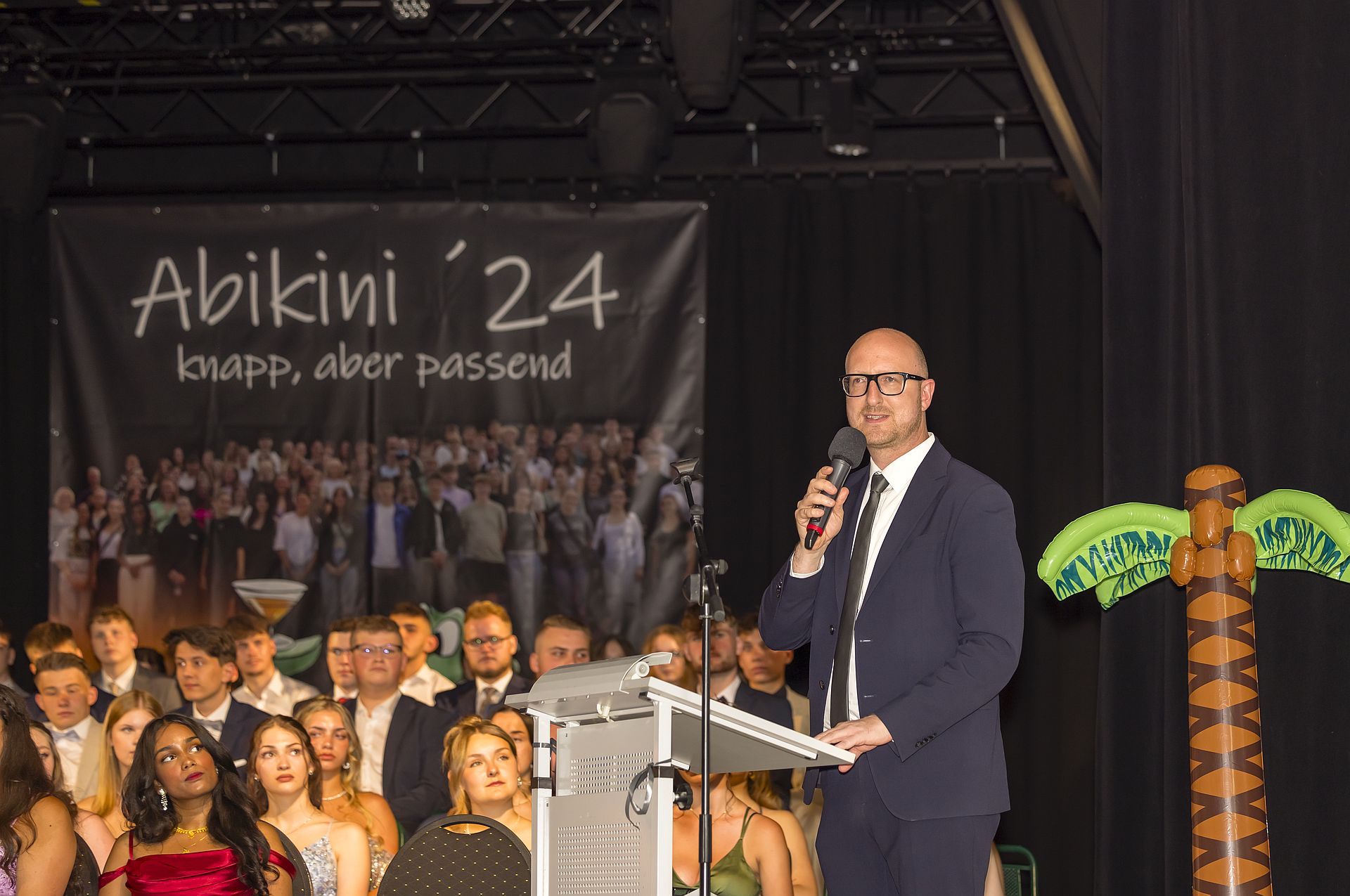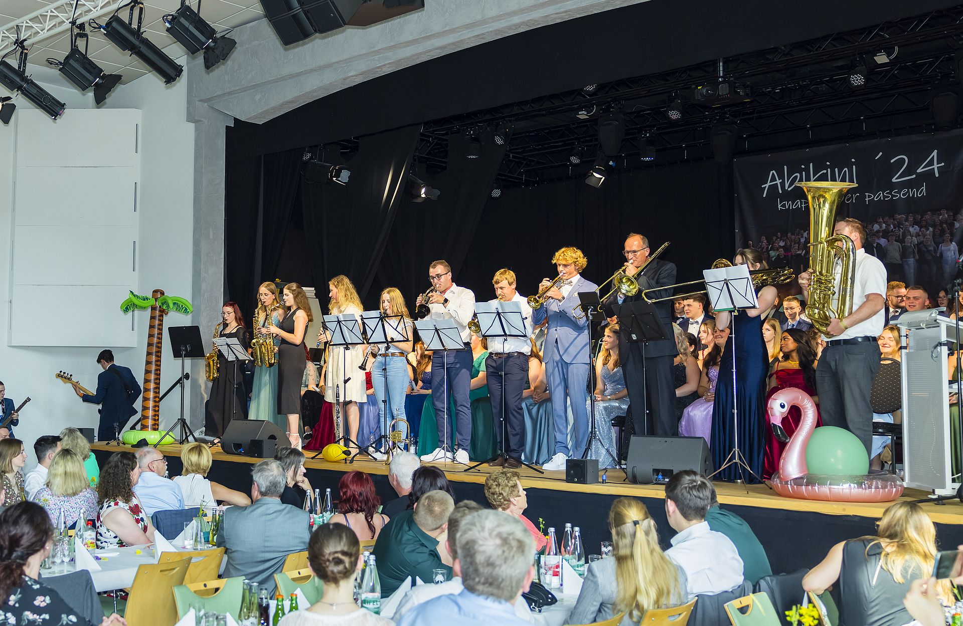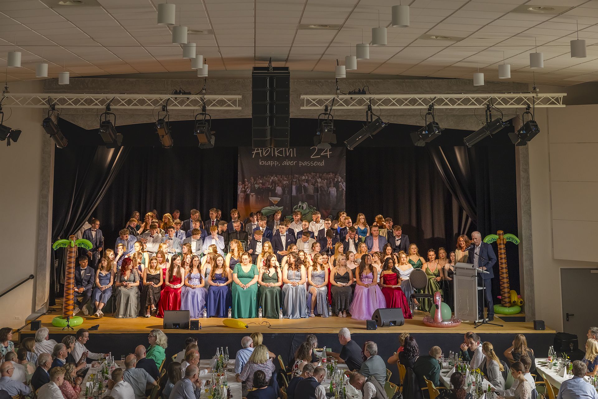 Nach einem Umzug ins Gemünder Kurhaus begann die offizielle Entlassungsfeier mit der Begrüßung durch die Moderatoren des Abends, Hannah Lenz, Abigail Müller und Gordej Kozlov, alle drei aus den beiden Abschlussklassen.