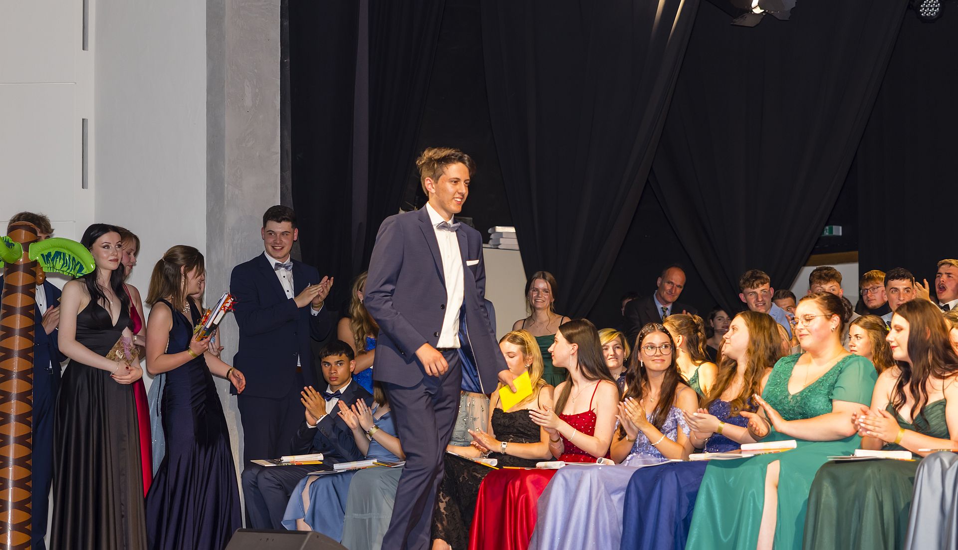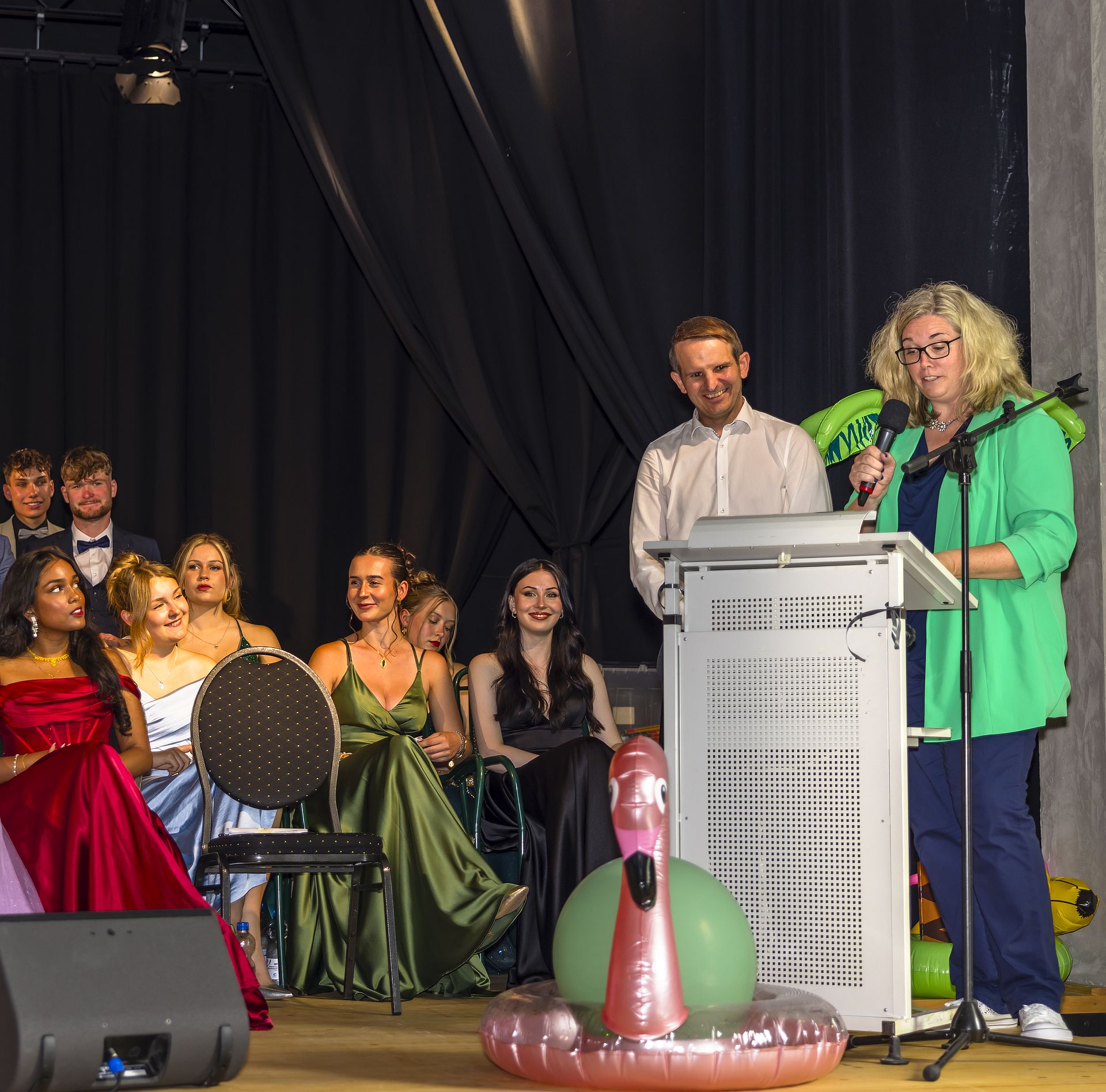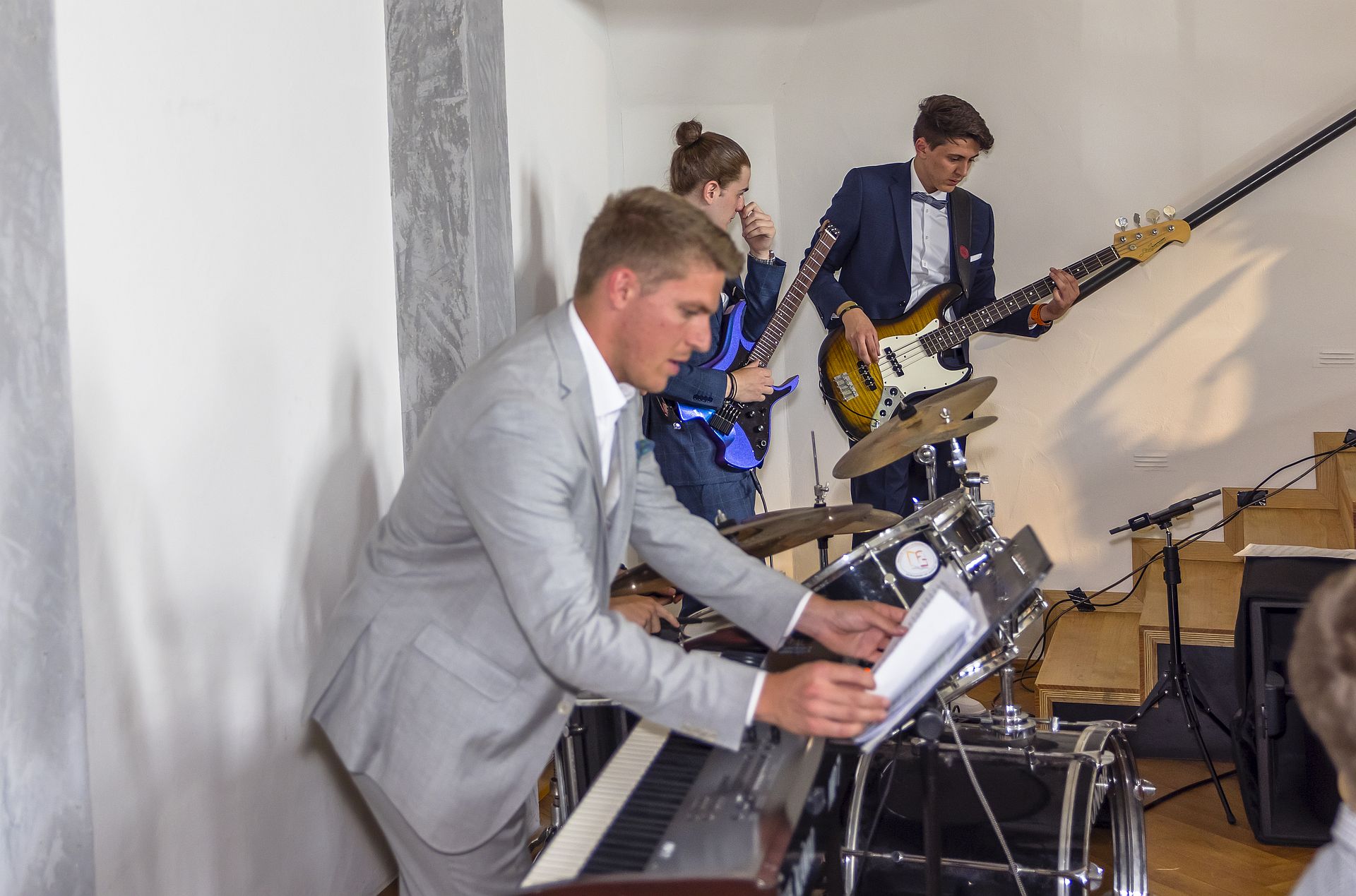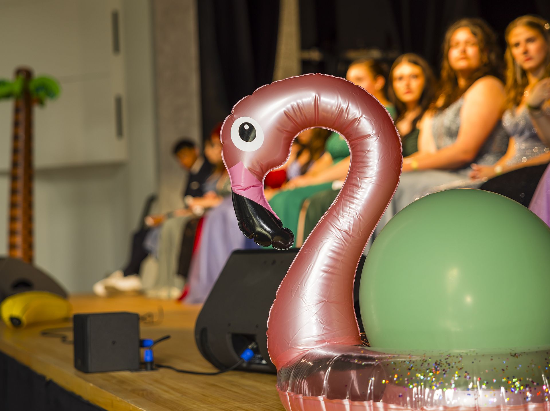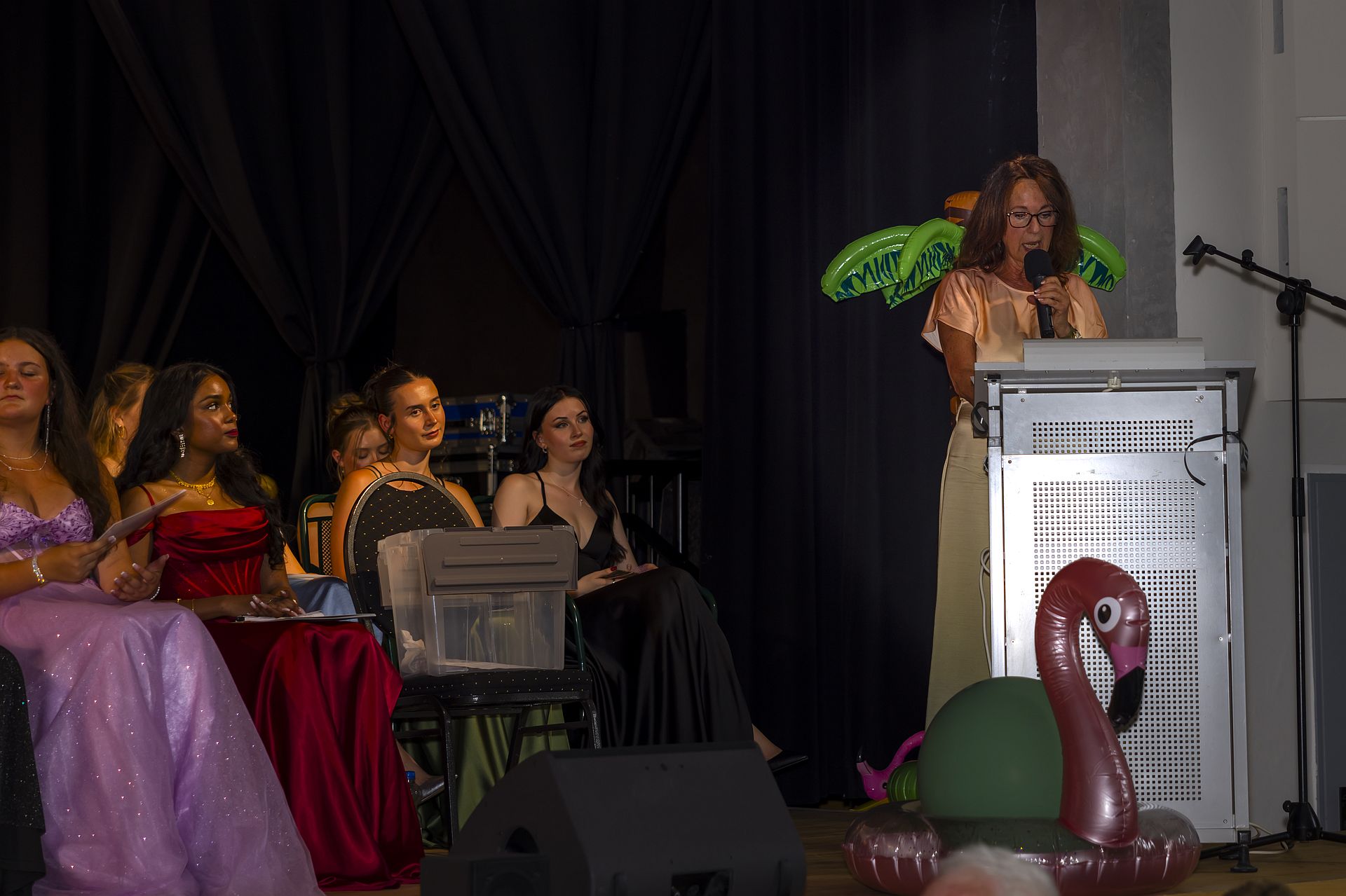 Nach einem Umzug ins Gemünder Kurhaus begann die offizielle Entlassungsfeier mit der Begrüßung durch die Moderatoren des Abends, Hannah Lenz, Abigail Müller und Gordej Kozlov, alle drei aus den beiden Abschlussklassen.