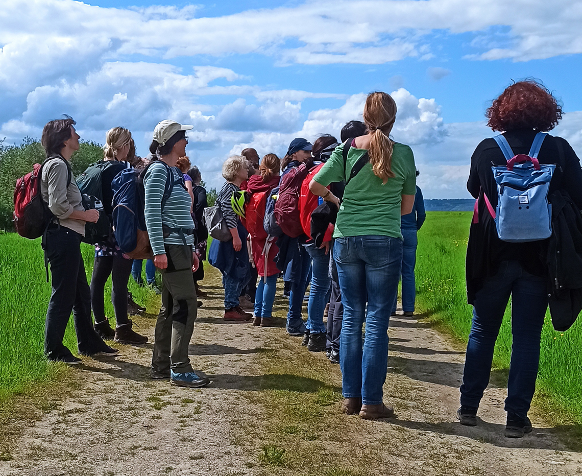 Am 23.5.24 fand eine weitere spannende ornithologischen Fortbildung für die Lehrkräfte der Nationalparkschulen mit der Naturpädagogin Ursula Wawra zum Thema „Vögel auf der Dreiborner Hochfläche“ statt. Frau Sylvia Ostermeier nahm als Vertreterin der Clara-Fey-Schule an der Veranstaltung teil. Die typischen Vögel des Offenlandes, wie z.B. der Neuntöter, die Feldlärche und die Goldammen zeigten sich auf der ca. 5 km langen Wanderung an unterschiedlichen Stellen. Außerdem war das seltene Schwarzkelchen zu beobachten. Es war sehr entspannend den Rufen sowie Gesängen der selten gewordenen Vögel zu lauschen. Mit dem Fernglas und etwas Glück konnten die zugehörigen Vögel auch auf der Wiese oder im Gebüsch erspähen werden. Frau Wawra legte außerdem großen Wert darauf, die ökologischen Zusammenhänge deutlich zu machen, z.B. welche Blumen Futterpflanzen für bestimmte Insekten sind und welcher Zusammenhang zu den beobachteten Vögeln besteht. Darüber hinaus konnten auch weitere Entdeckungen gemacht werden, wie Laichschnüre in einer Pfütze, die Frau Wawra begeistert als Laich der Kreuzkröte erläuterte oder wie eine extensive Nutzung von Wiesen mit spätem Mähen Ende Juni oder einer schonenden Beweidung mit Schafen das Überleben der Bodenbrüter, wie der Feldlärche im Nationalpark ermöglicht.